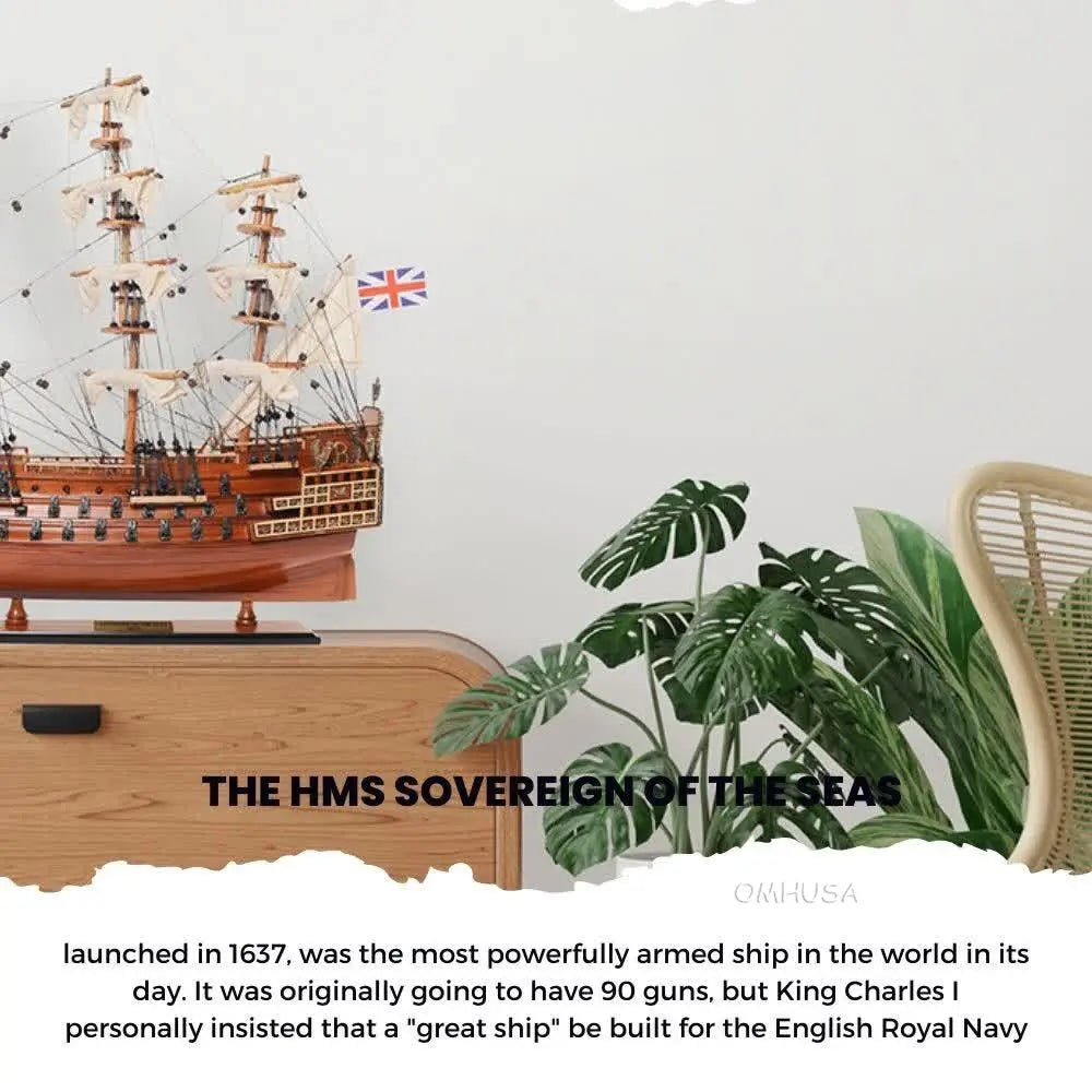 - Handcrafted wooden replica of the 17th-century HMS Sovereign of the Seas