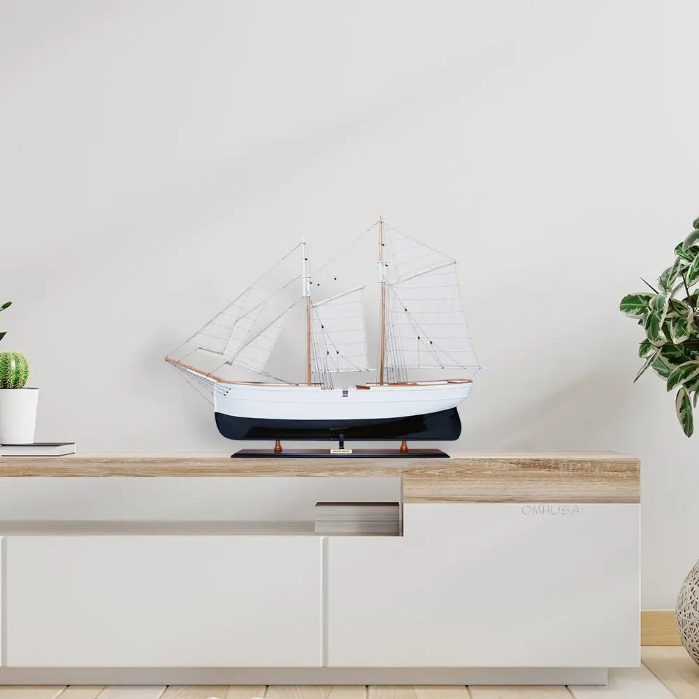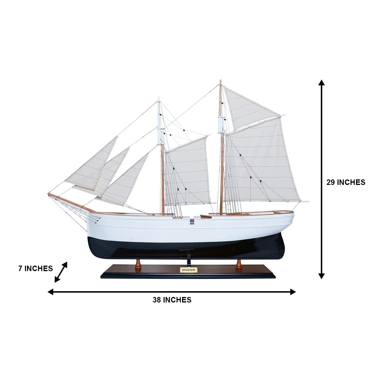 Old Modern Handicrafts WanderBird Ship Model – 38"x7"x29", Handcrafted Schooner with Full Rigging & Sails