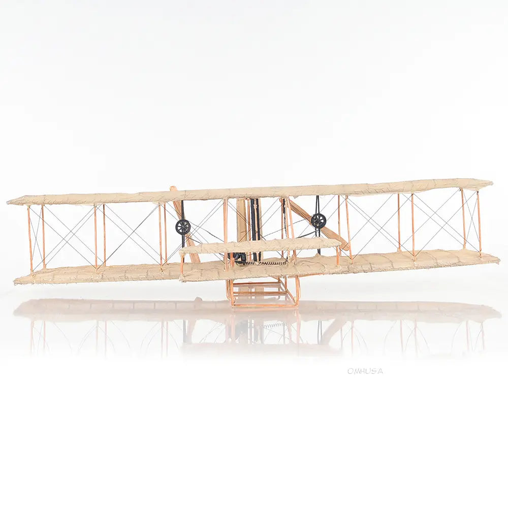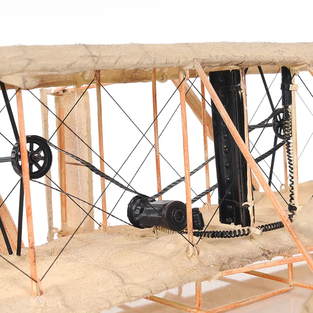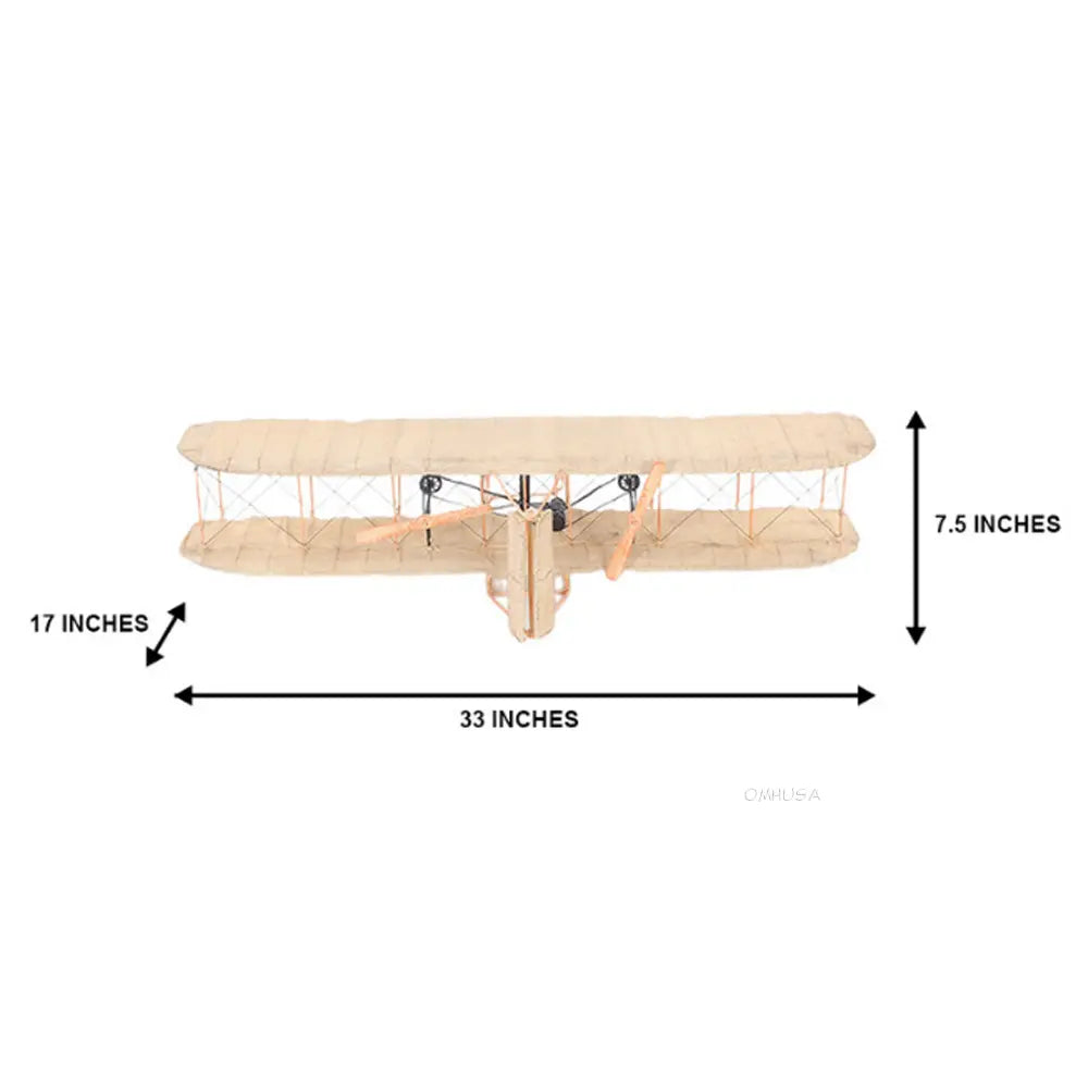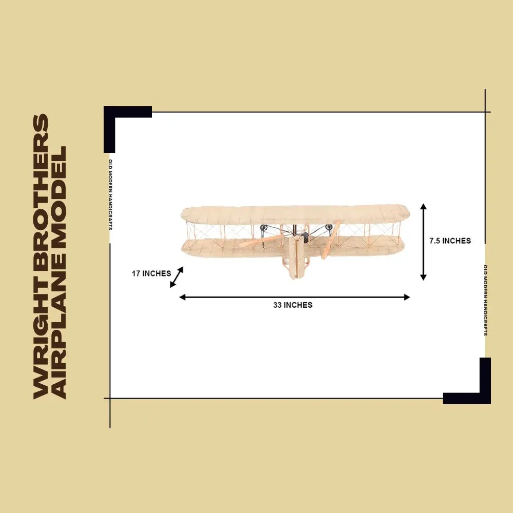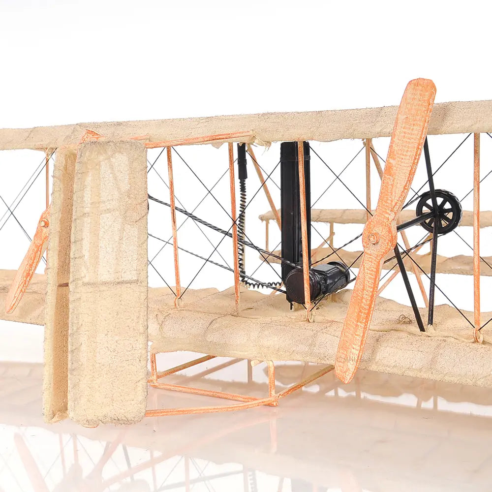 Celebrate the pioneering spirit of aviation with the Old Modern Handicrafts Wright Brothers Airplane Model. Crafted from a 100% iron wired frame covered in authentic burlap fabric, this 33-inch long replica captures the historic design of the Wright Flyer, the first powered heavier-than-air aircraft. Realistic details like rolling wheels, wood propellers that spin, and securely welded metal accents bring this iconic biplane to life. Measuring 33" L × 17" W × 7.5" H, it is a perfect decorative centerpiece for aviation enthusiasts, collectors, or anyone fascinated by the history of flight. Sturdy yet lightweight, this model makes a striking addition to homes, offices, or display cases.