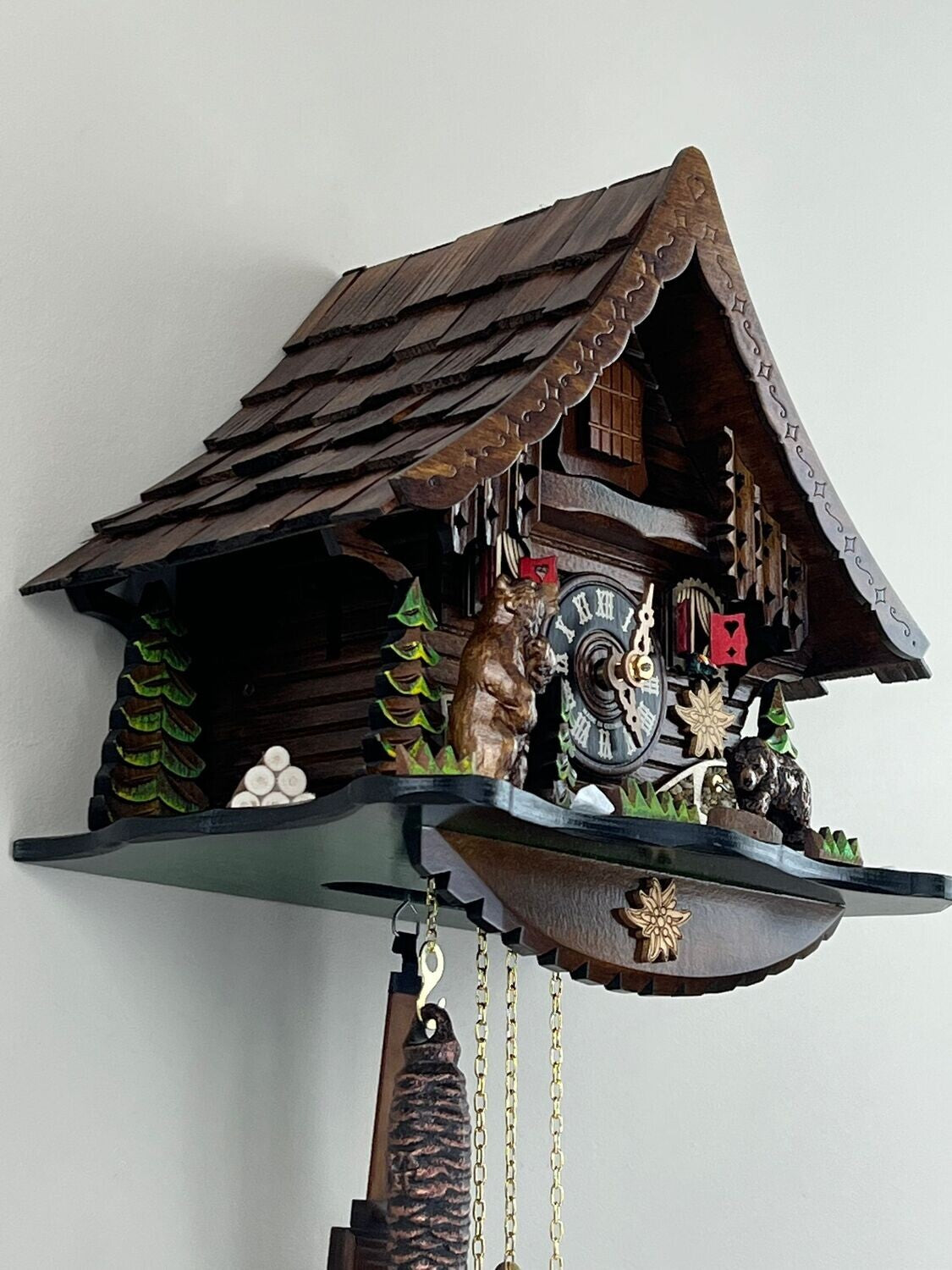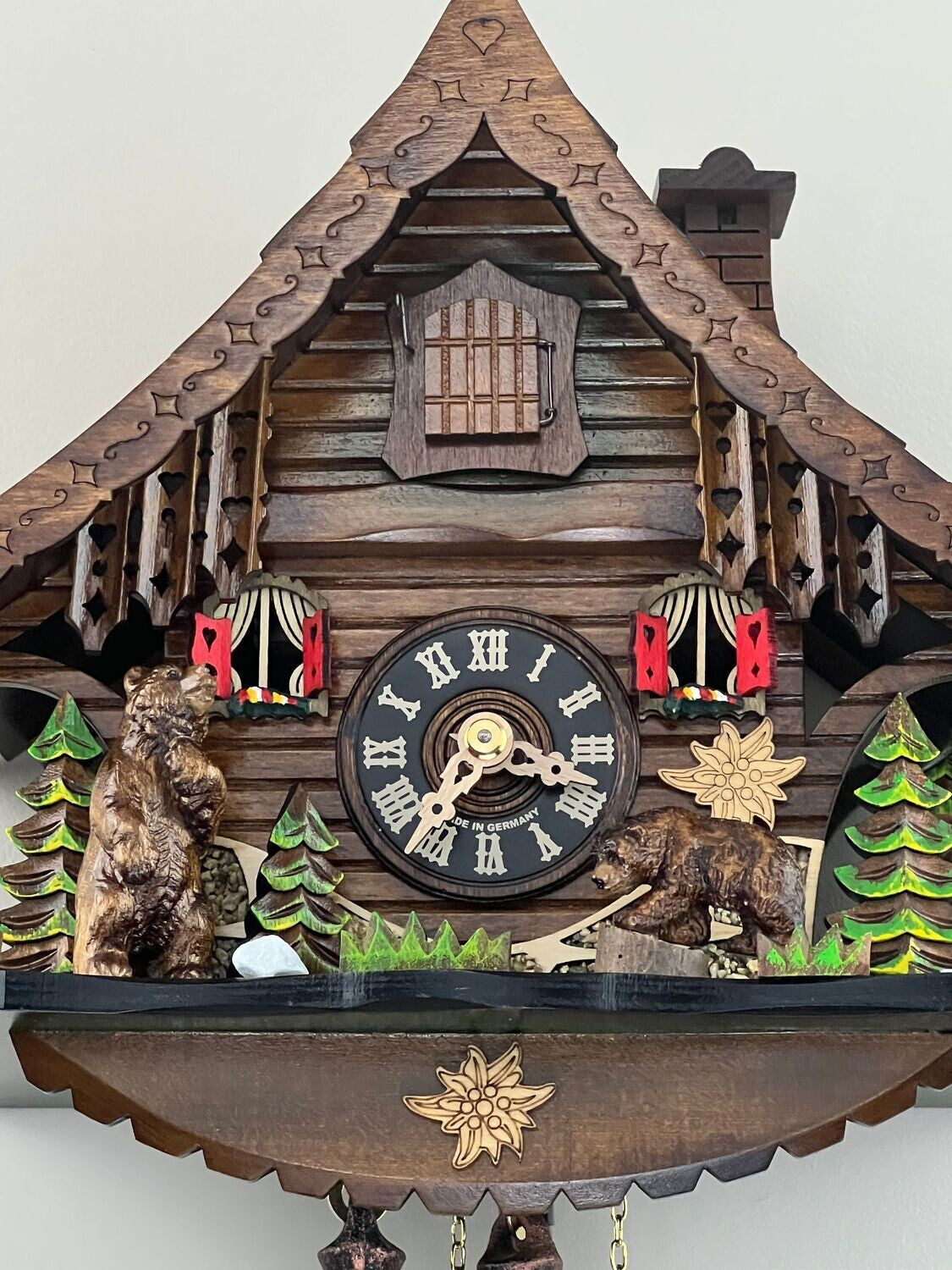 - Moving bear at the top of every hour, cuckoo bird announces the time