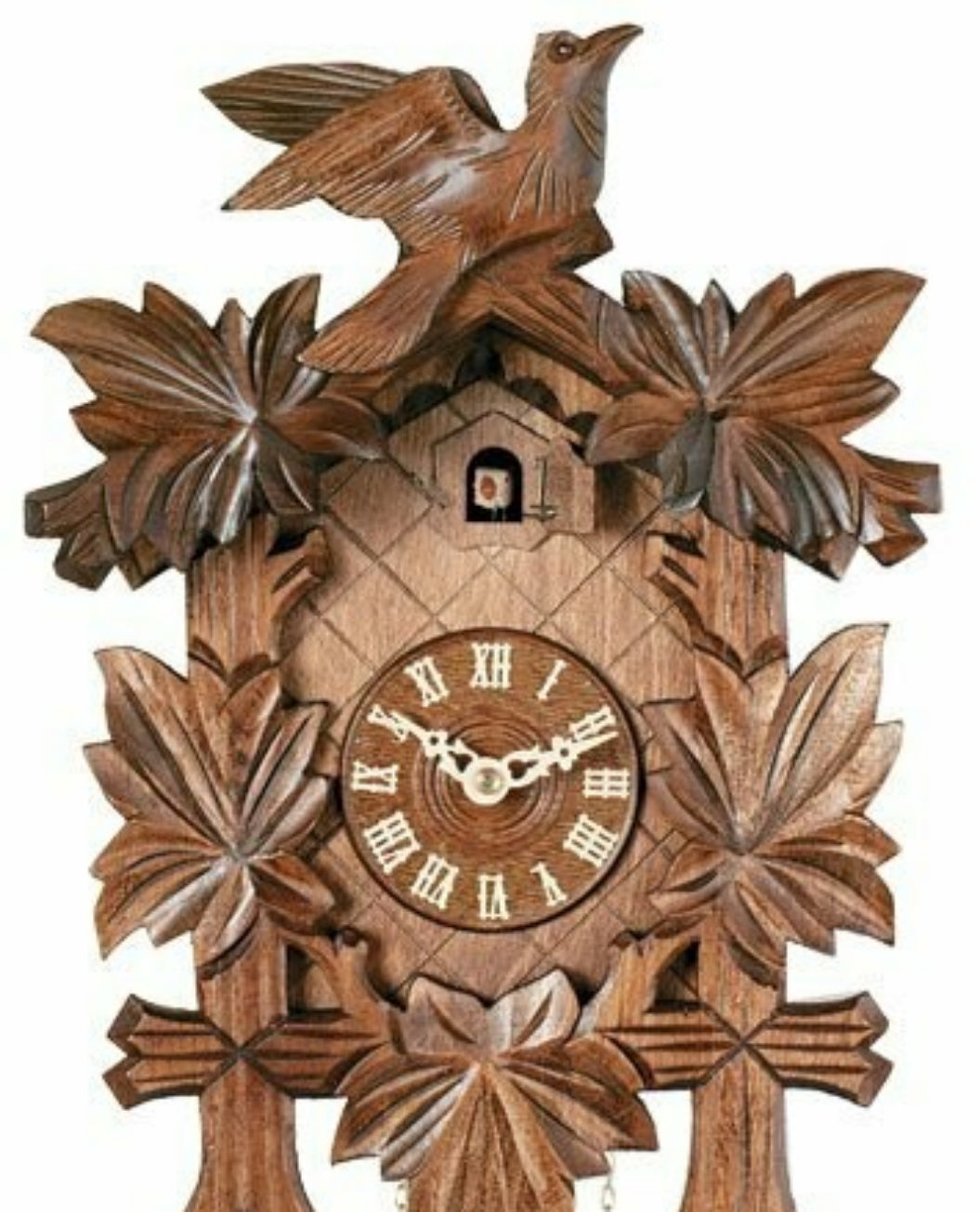 - Hand carved maple leaves and bird crafted by Black Forest artisans