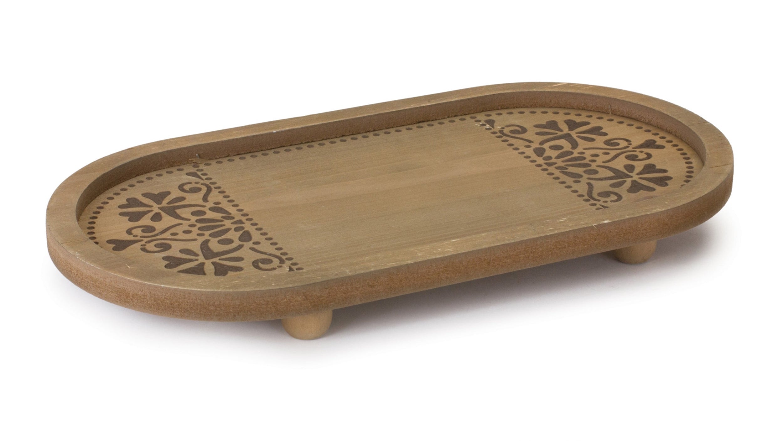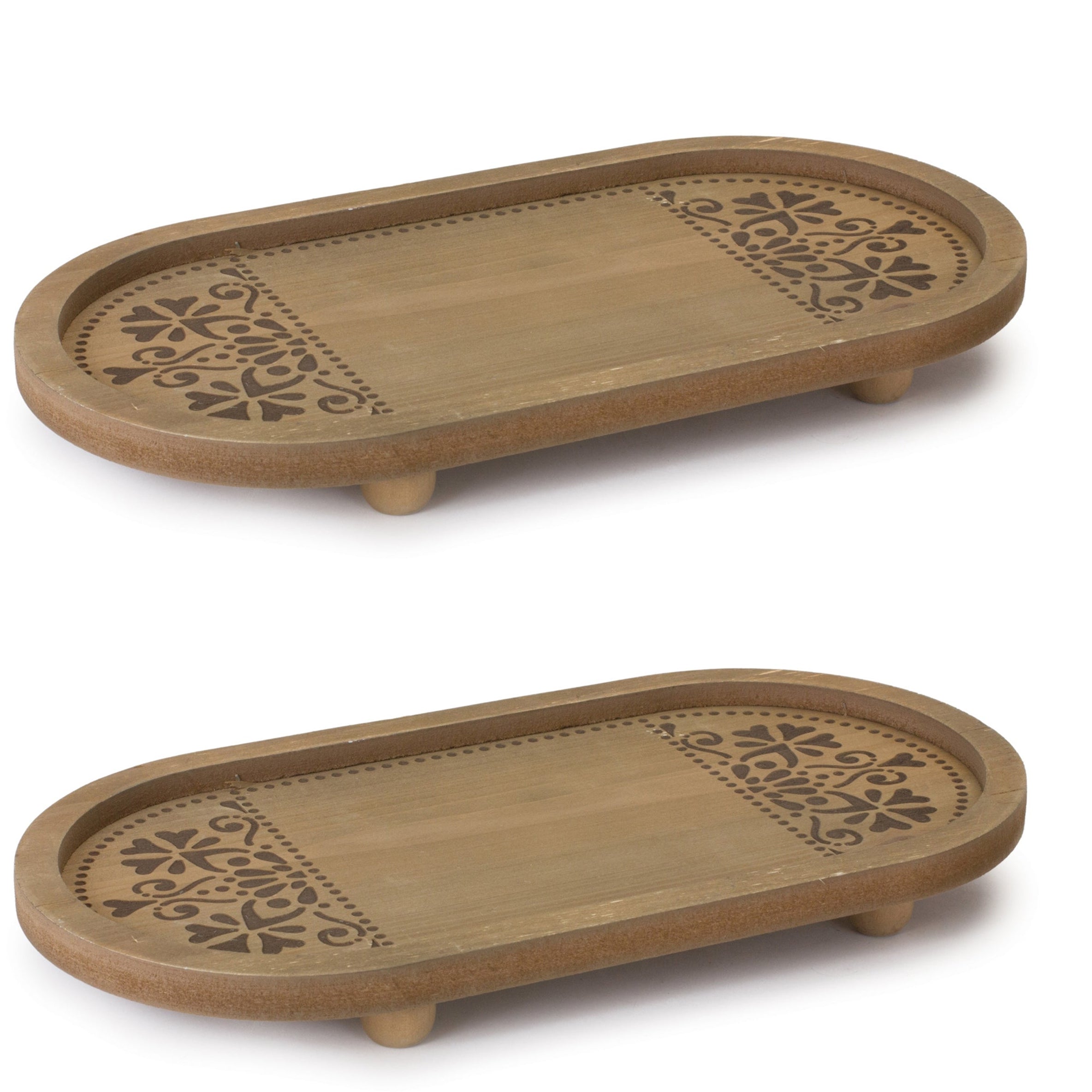 Ornate Wood Tray Set – 1.75"H Wood and MDF Tray Accents Brown Home Decor (Set of 2) by Melrose