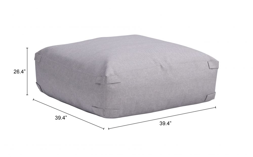 SKU - ZUO-704151Ottoman 16.1"H Gray – Olefin Outdoor Fabric Seat with Textilene Base, Modular Weather-Resistant Accent