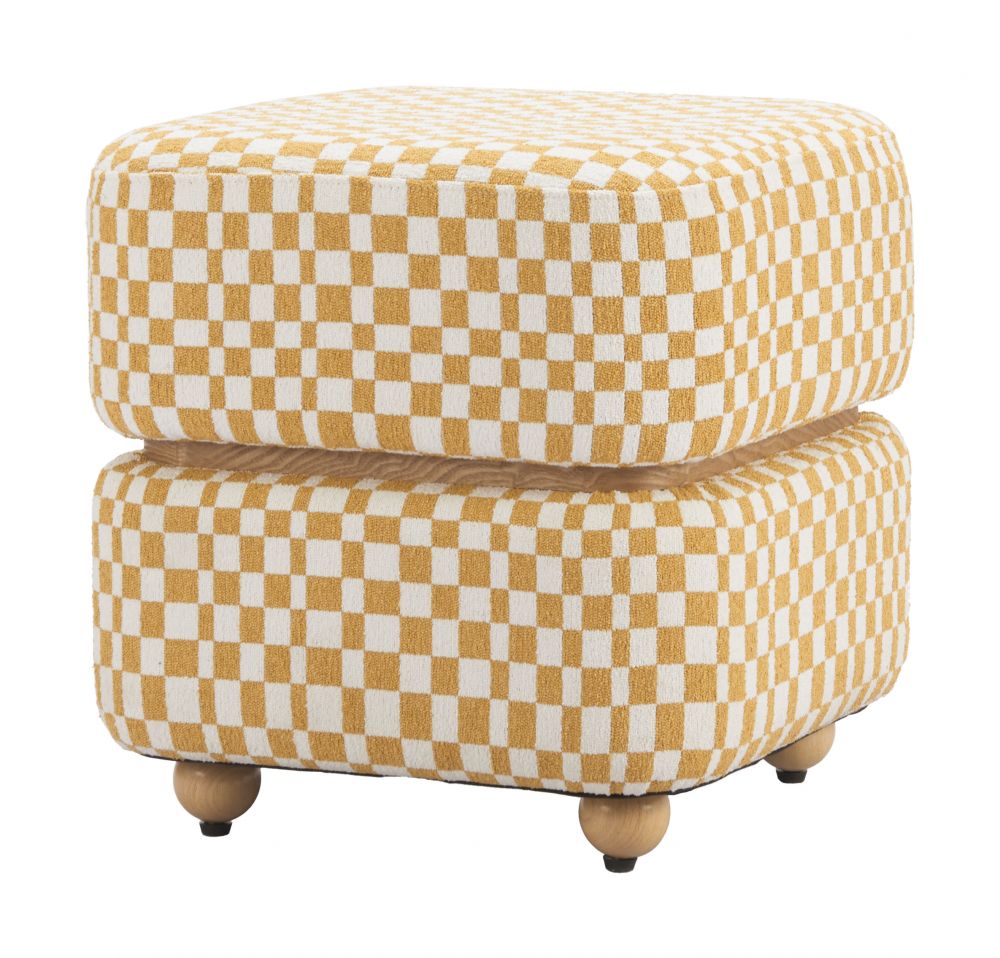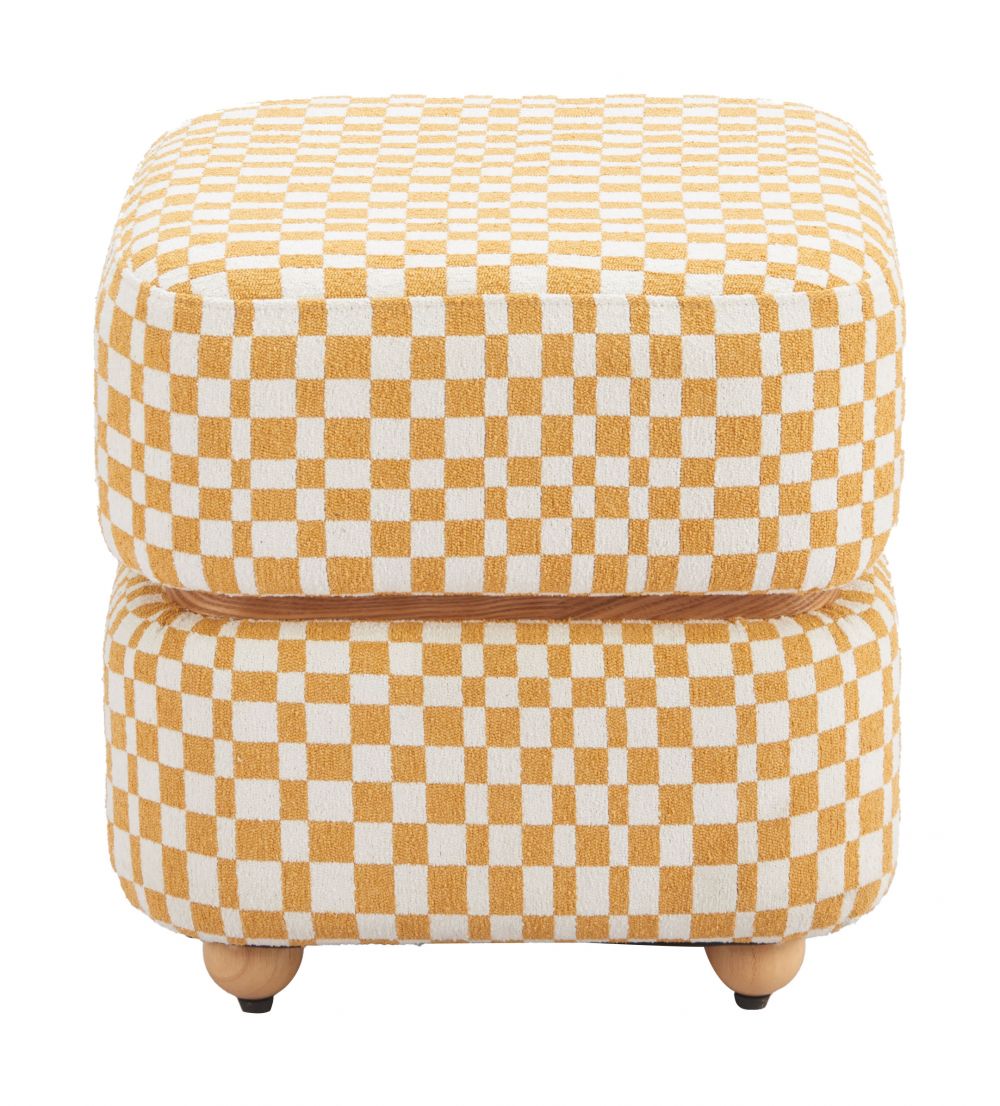 SKU - ZUO-110772Ottoman 18.1"H Multicolor – Woven 100% Polyester Fabric Seat with Rubberwood Base, Modern Indoor Accent