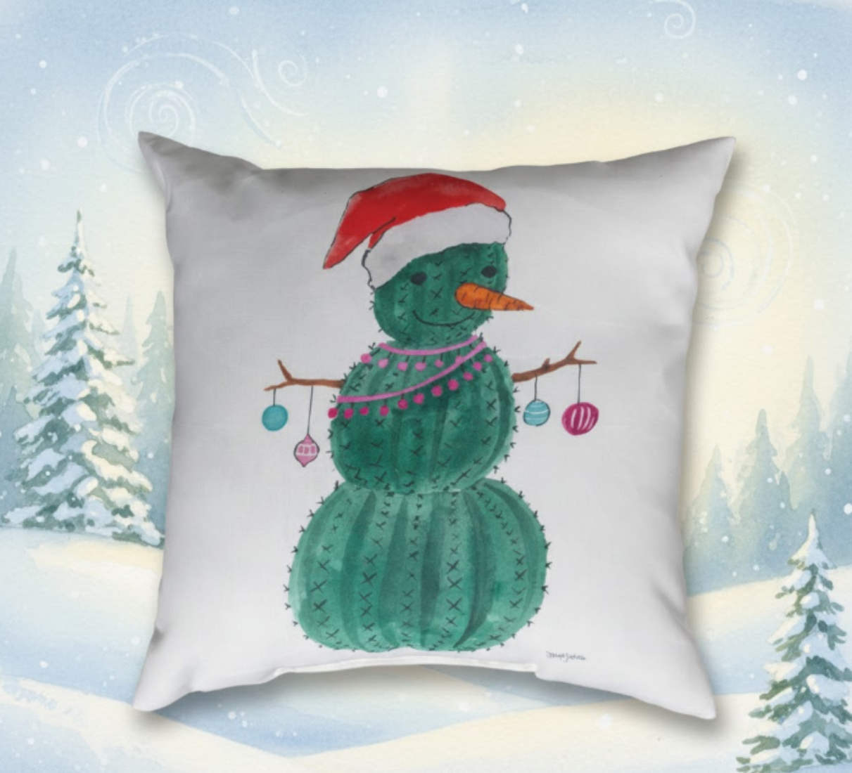 SKU - MWWSLVCCOutdoor Christmas Pillow - 18" Cactus Holiday Print Climaweave by Manual Woodworkers