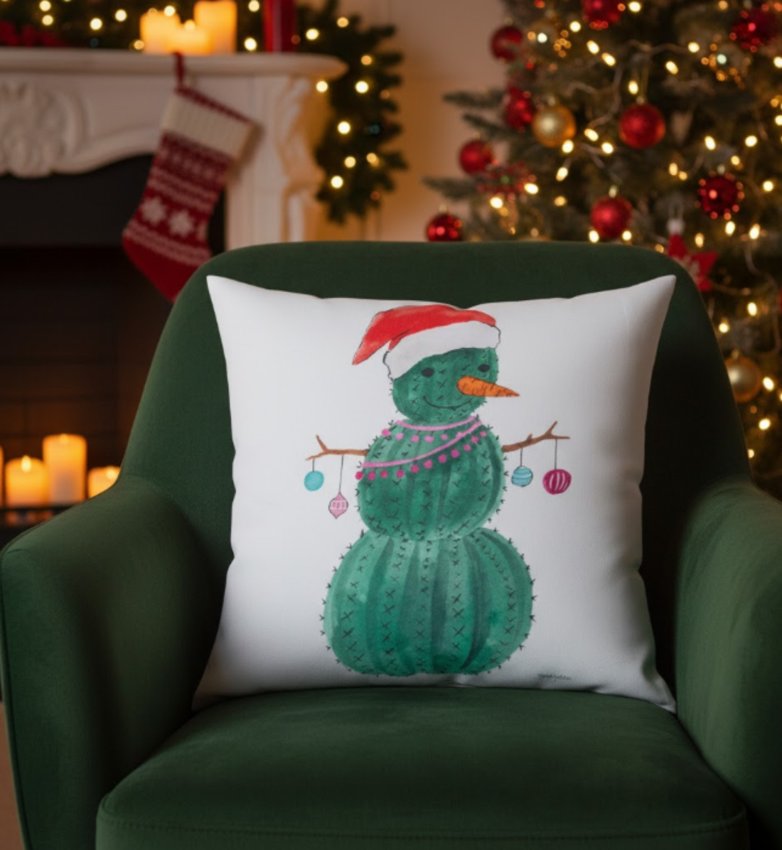 18 inch Christmas cushion Weather-resistant holiday pillow,cactus holiday pillow,cactus print pillow,Christmas outdoor pillow,Climaweave Christmas pillow,Climaweave cushion Holiday patio decor,Decorative Pillows,festive cactus throw pillow,festive decor pillow,LoomLuxe,outdoor holiday accessory Holiday garden cushion,polyester outdoor pillow Porch Christmas decor