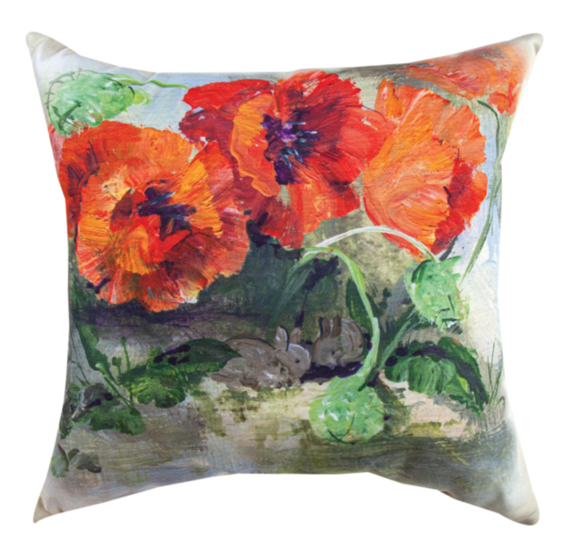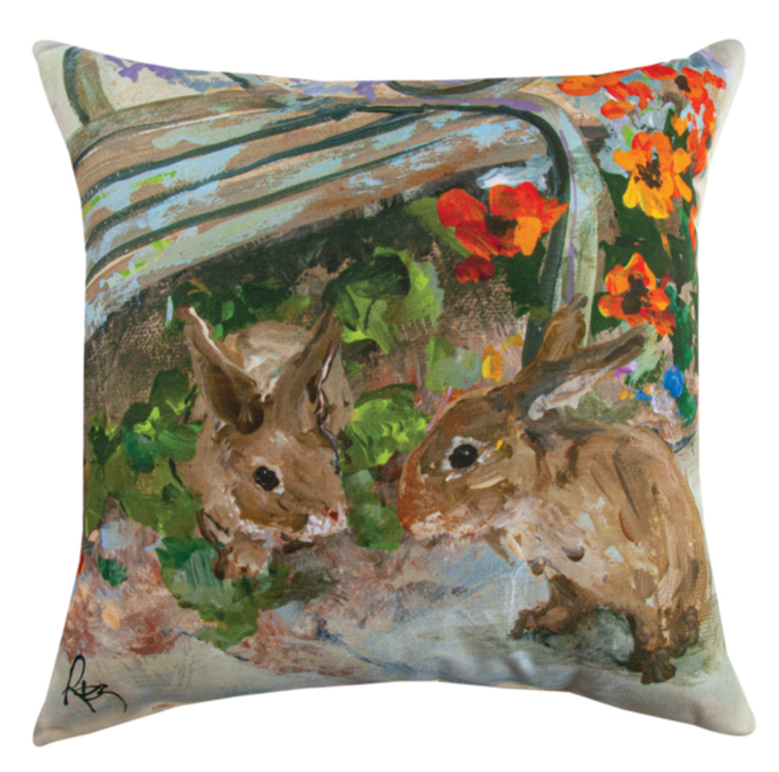 Outdoor Pillow - 2 Bunnies Design - 18" Climaweave Polyester by Manual Woodworkers
