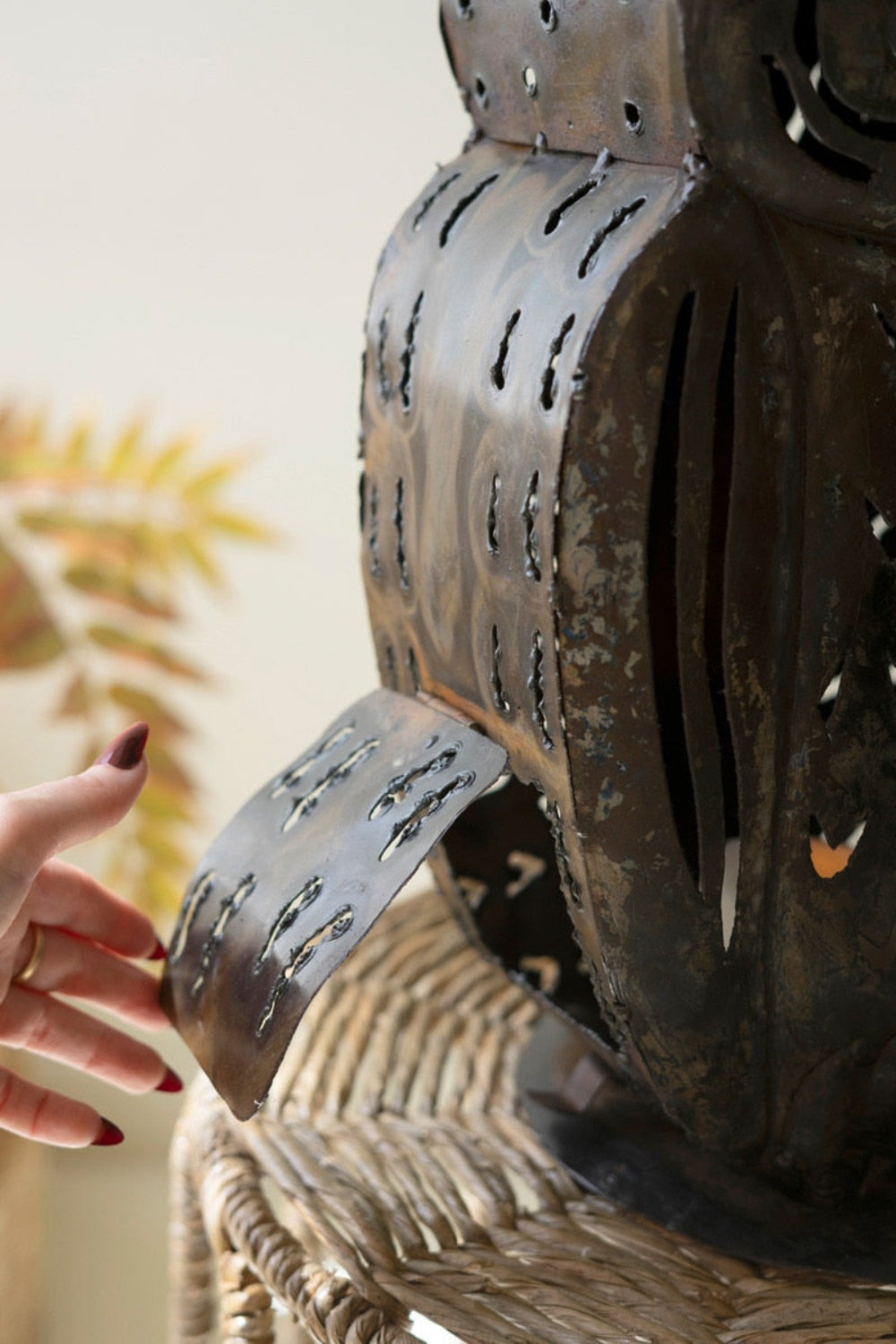 Rustic iron owl luminary by Kalalou