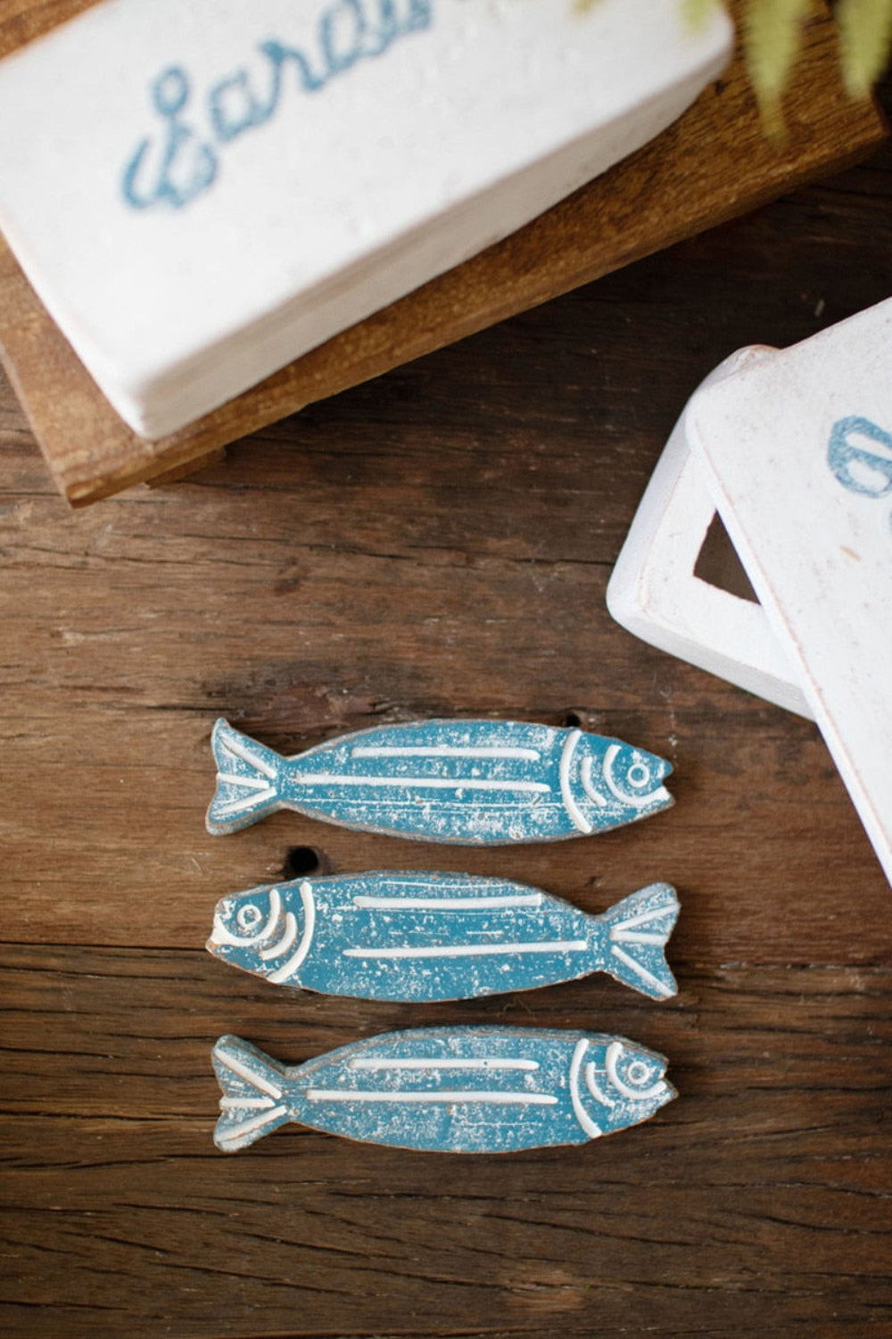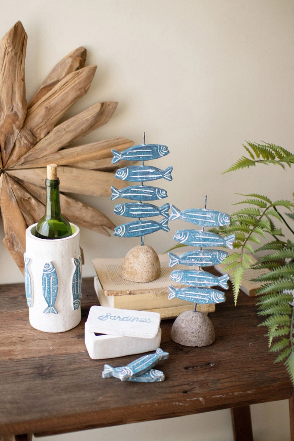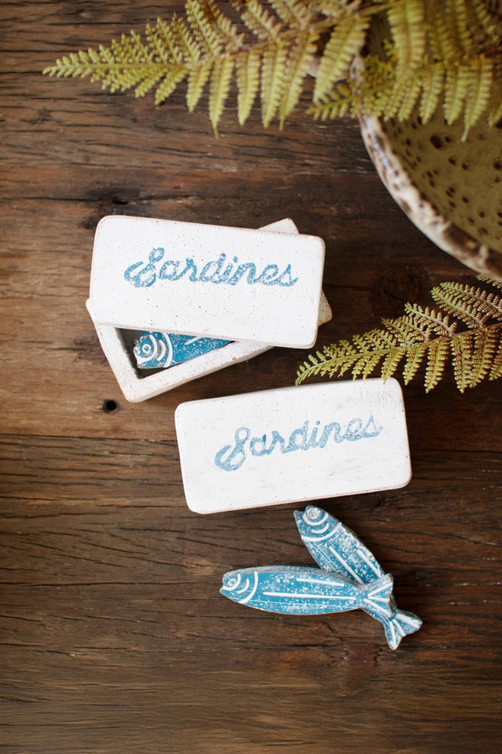 Painted Clay Sardines in a Box 2.25"H– Handcrafted Coastal Decor (Set of 4) by Kalalou