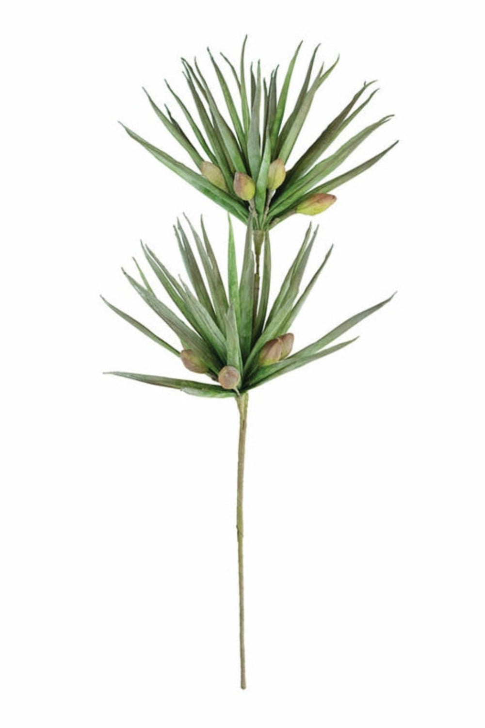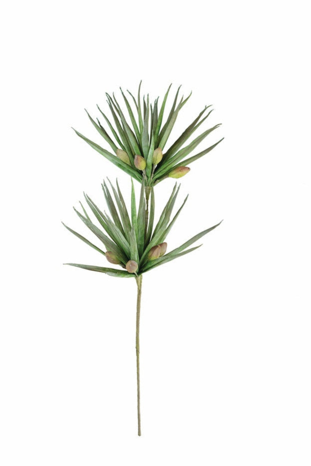 Infuse your home with tropical charm using the Botanica Palm Fronds with Buds by Kalalou. Standing 39 inches tall, this lifelike artificial stem showcases spiky green palm leaves with budding details that evoke a lush island vibe. Perfect for large vases or wild arrangements, this piece adds texture, height, and a breezy tropical feel to your interior décor. Crafted from durable EVA foam and wire, each stem can be bent or shaped to create natural, customized arrangements.