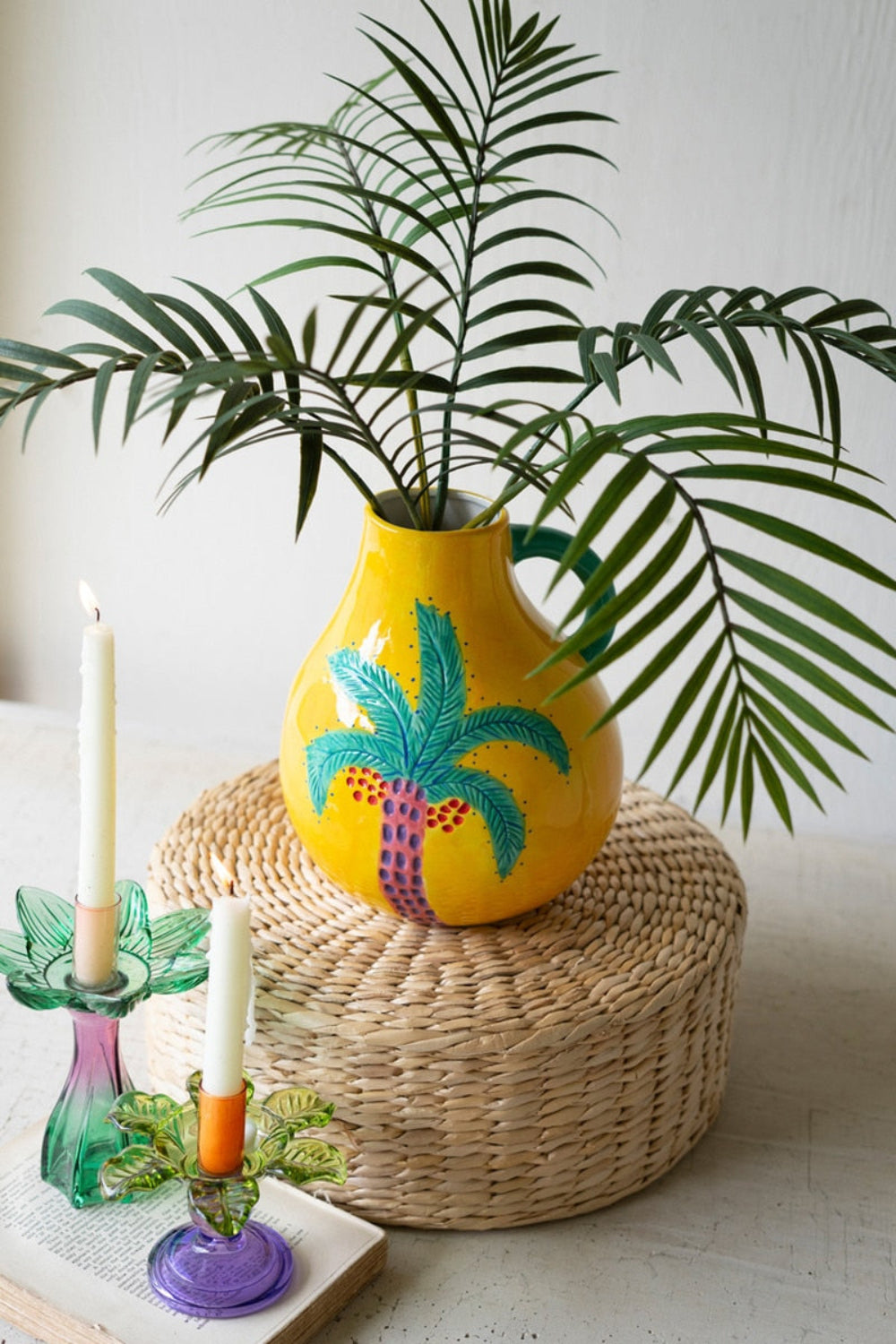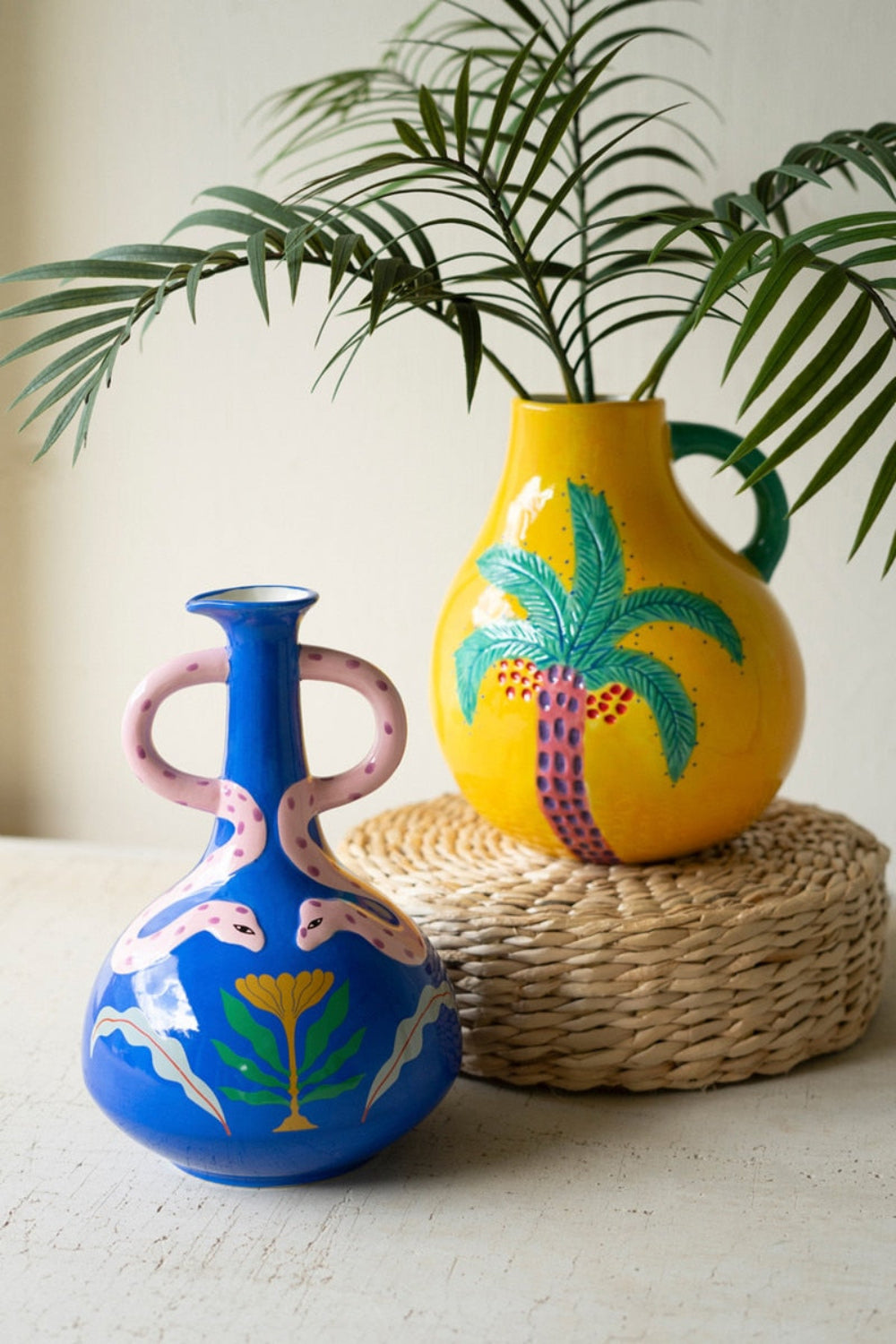 Palm Tree Ceramic Decorative Vase – 10" Tall Handcrafted Accent Set of 2 by Kalalou