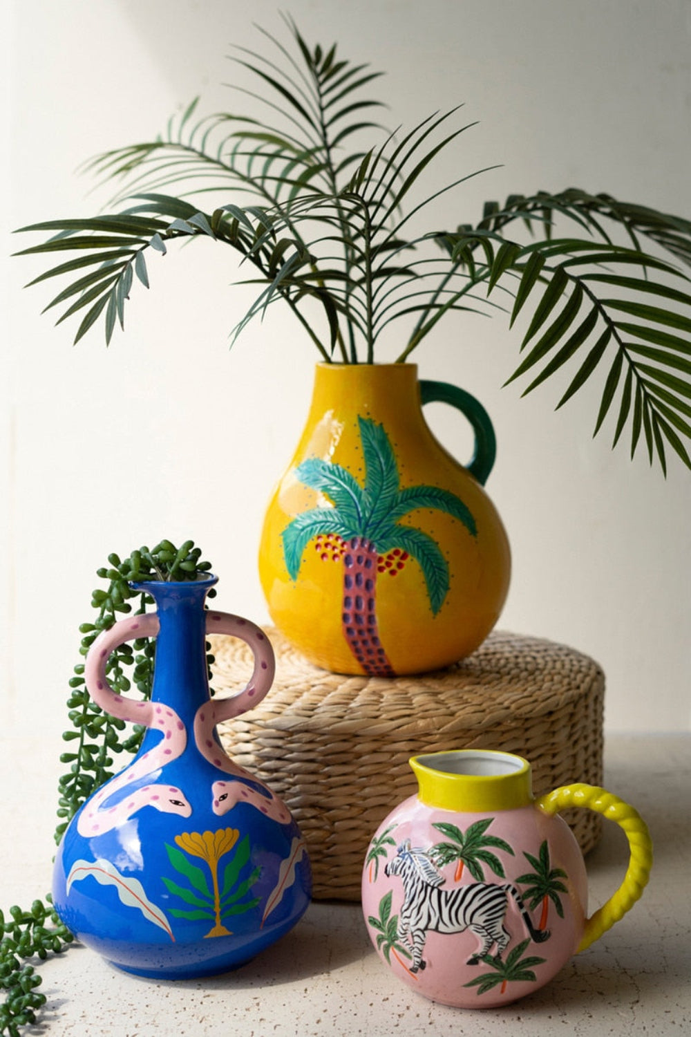 SKU - KAL-CNA2096KPalm Tree Ceramic Decorative Vase – 10" Tall Handcrafted Accent Set of 2