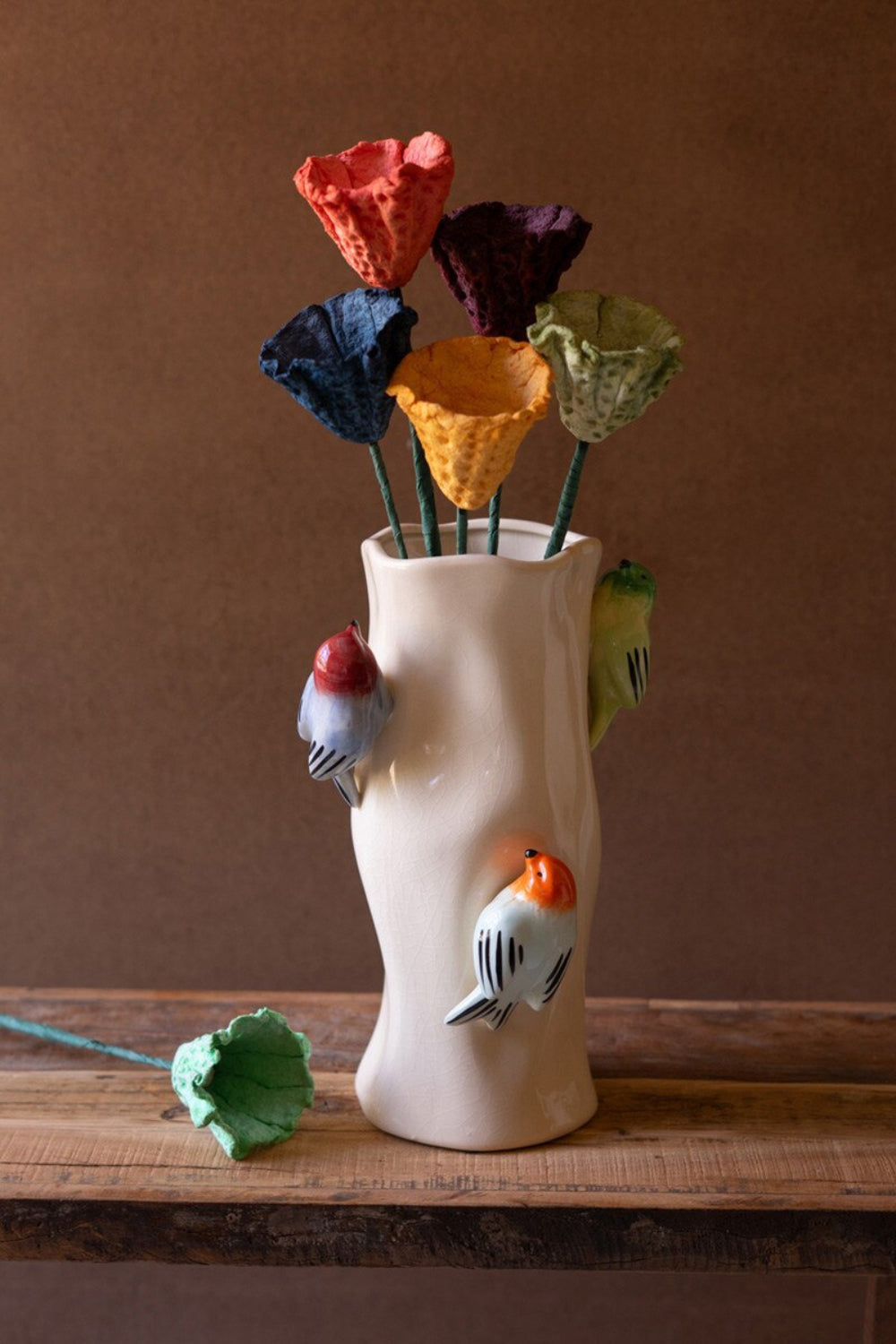 Paper Mache Flowers – 18" Tall Decorative Stems Set of 6 by Kalalou