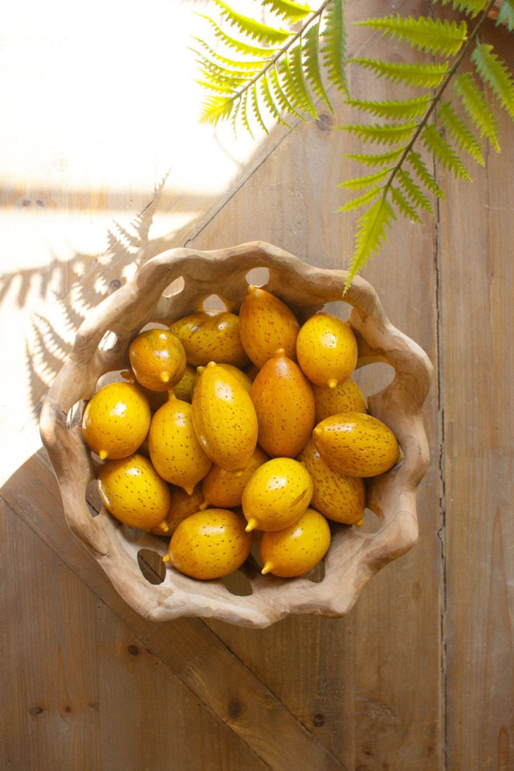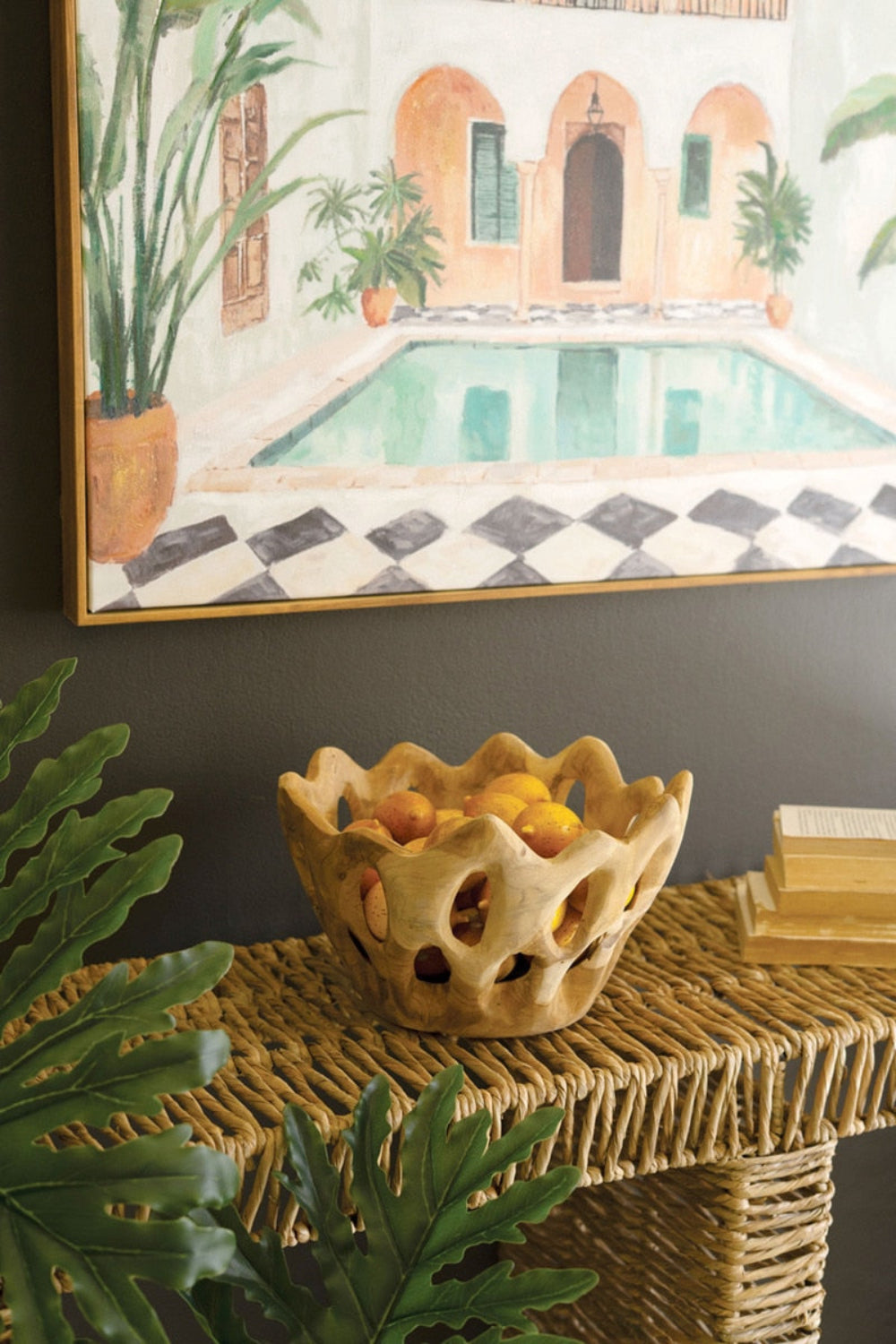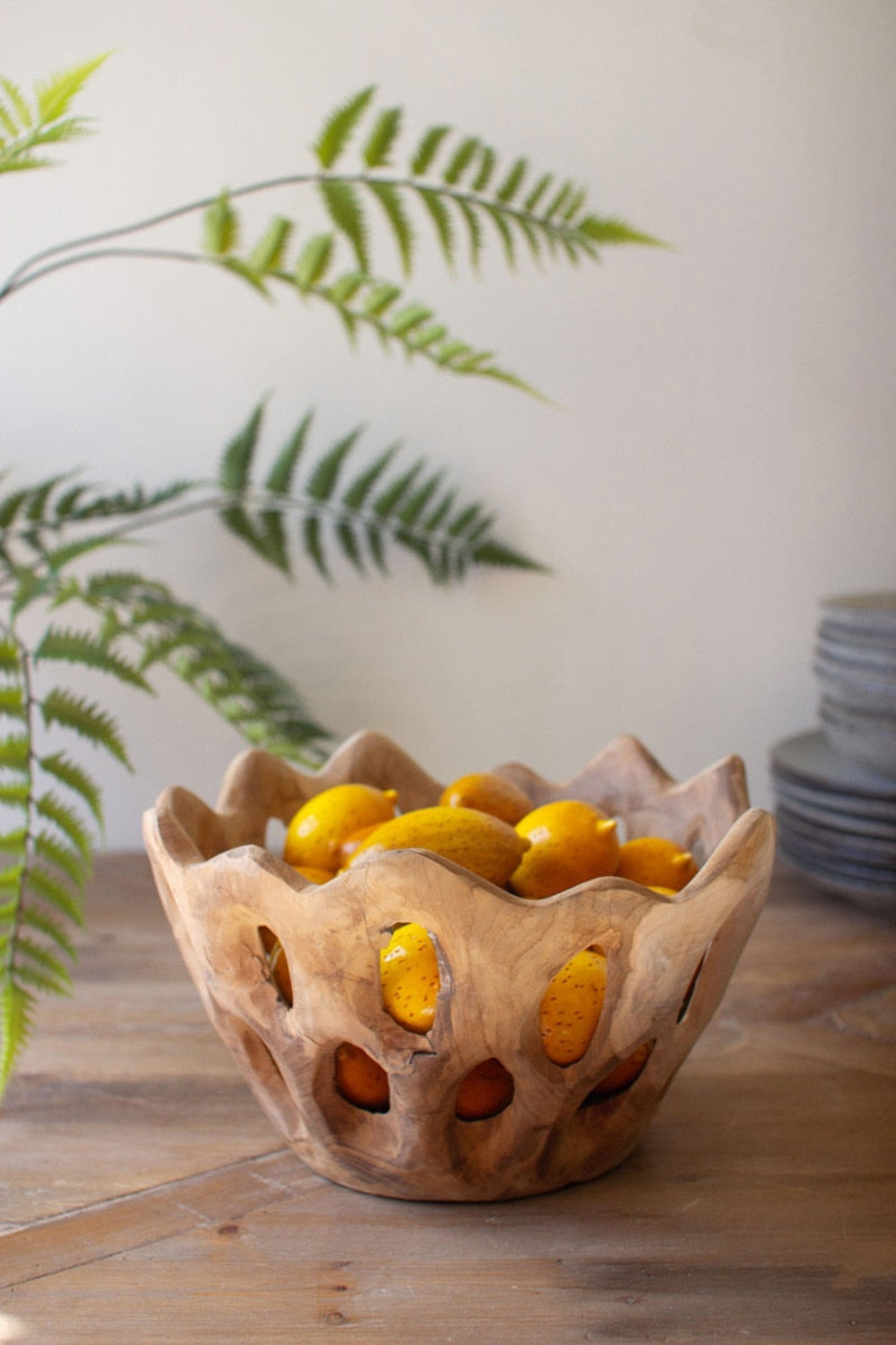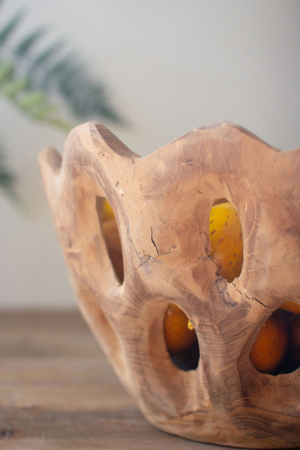 Perforated Teakwood Bowl – 7"Tall Handcrafted Wooden Accent by Kalalou