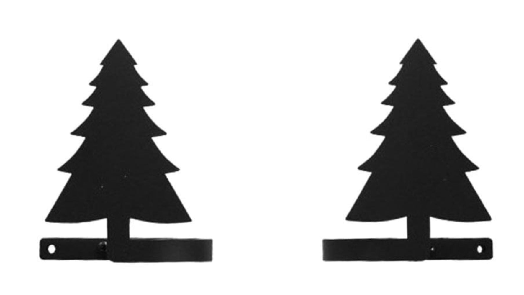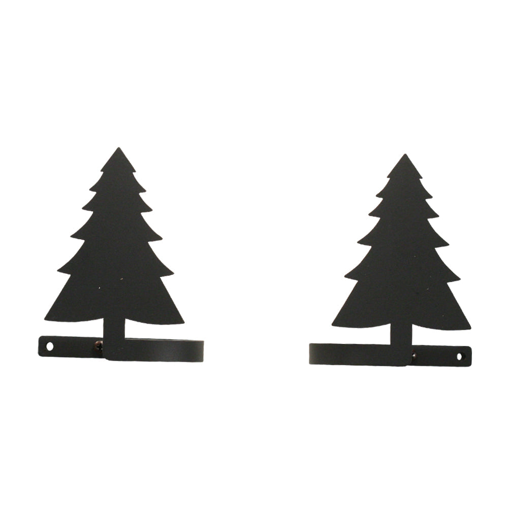 Pine Tree Curtain Tie Backs (Pair) – 5" H, Matte Black Powder-Coated Wrought Iron Curtain Holdbacks by Village Wrought Iron Inc.