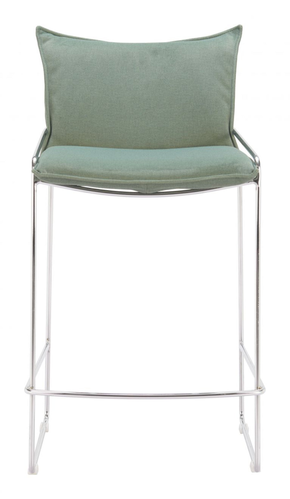 Pola Counter Stool Green 36.6"H – Poly Linen Seat With Chromed Steel Frame By Zuo Modern