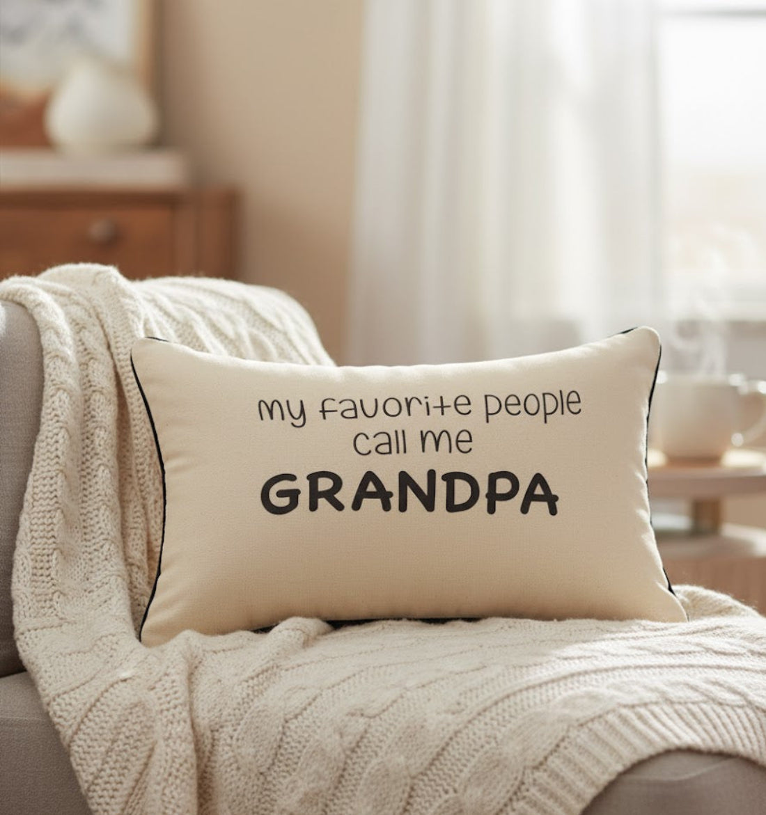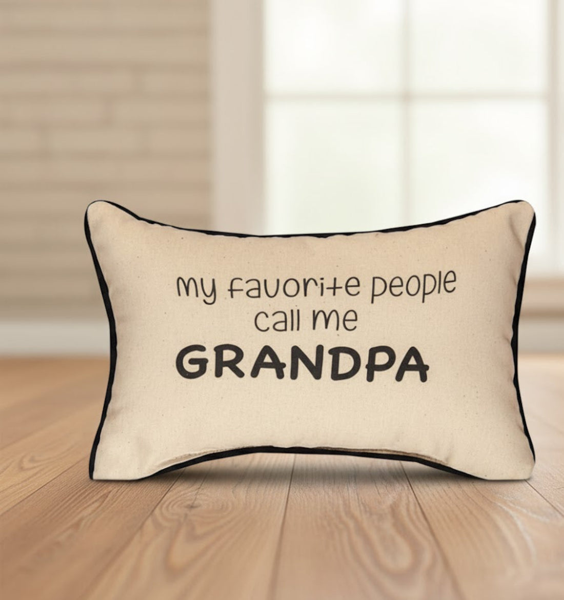 Celebrate the special bond of family with the My Favorite People Call Me Grandpa Word Pillow. Crafted from soft and durable 100% polyester, this 12.5x8-inch accent pillow offers a cozy touch to any sofa, chair, or bedroom. Featuring a heartfelt phrase that honors the love between grandparents and grandchildren, it adds warmth and personality to home décor. Ideal as a thoughtful gift for any grandparent, this sentimental pillow brings both comfort and charm to daily life. Designed for lasting use, it’s a meaningful accent piece that expresses pride and affection in being called “Grandpa.”
