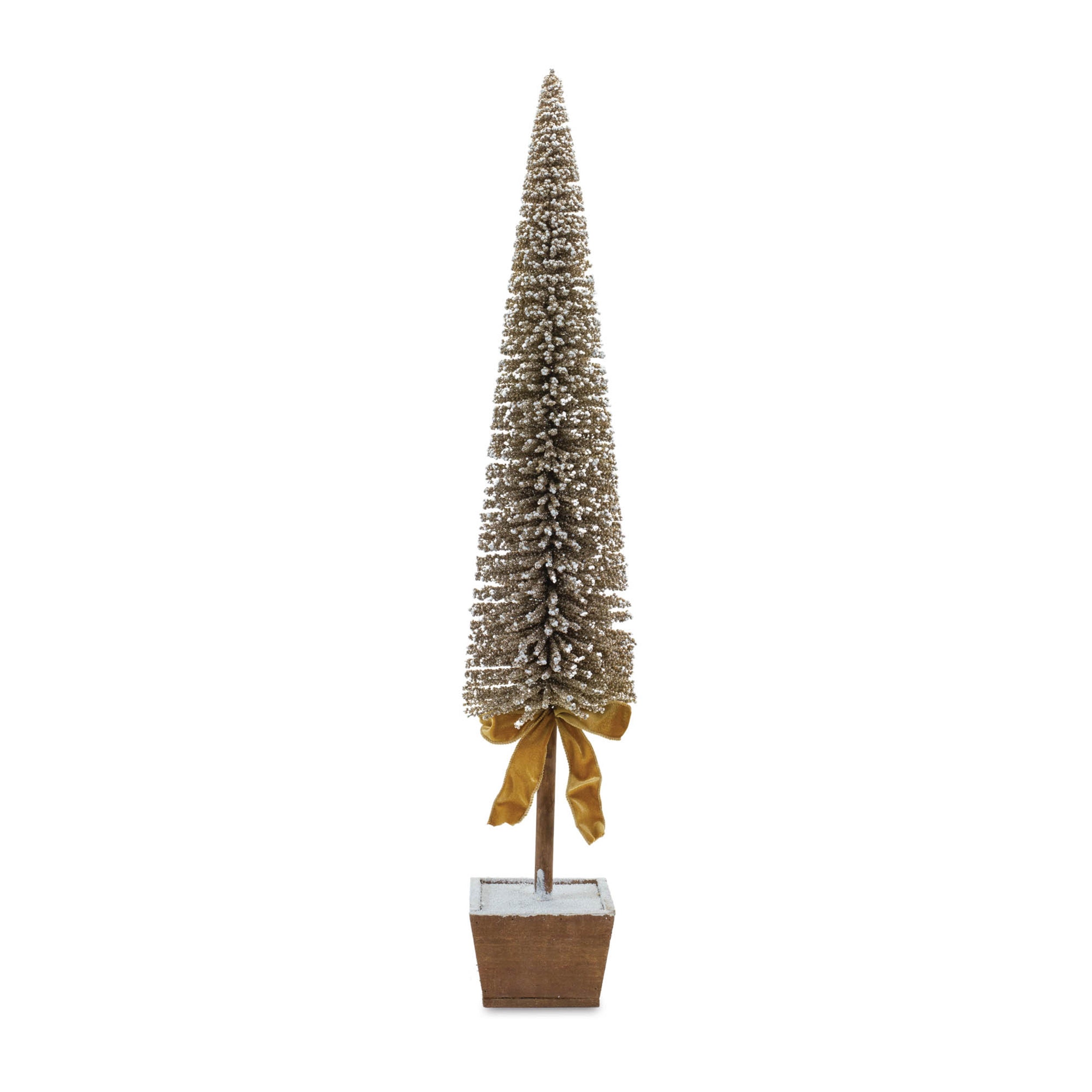 Potted Bottle Brush Pine Tree Set – 20.5", 30", 39"H Gold & White Tabletop Christmas Trees (Set of 3) Plastic Holiday Accents by Melrose
