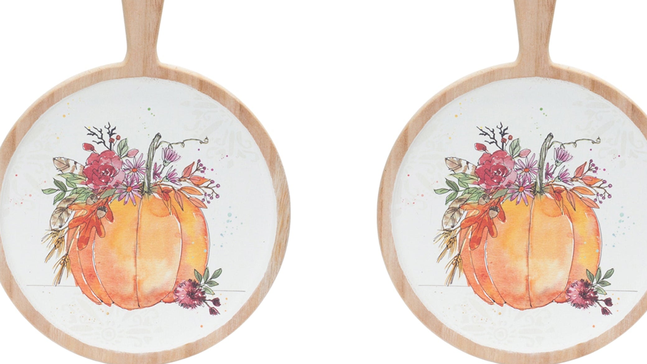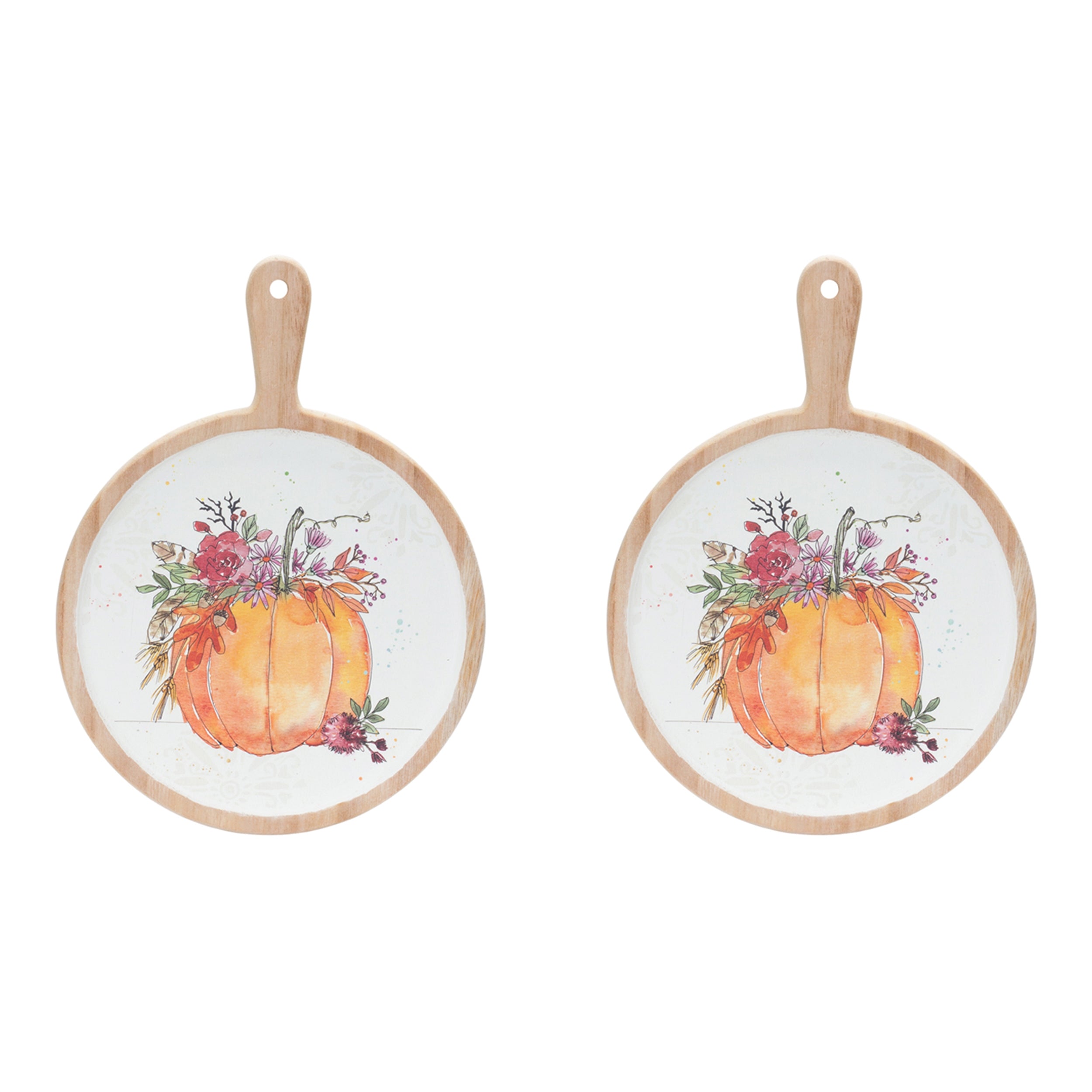 Pumpkin Cutting Board (Set Of 2) 12.25" Pine Watercolor Design Autumn Decor By Melrose