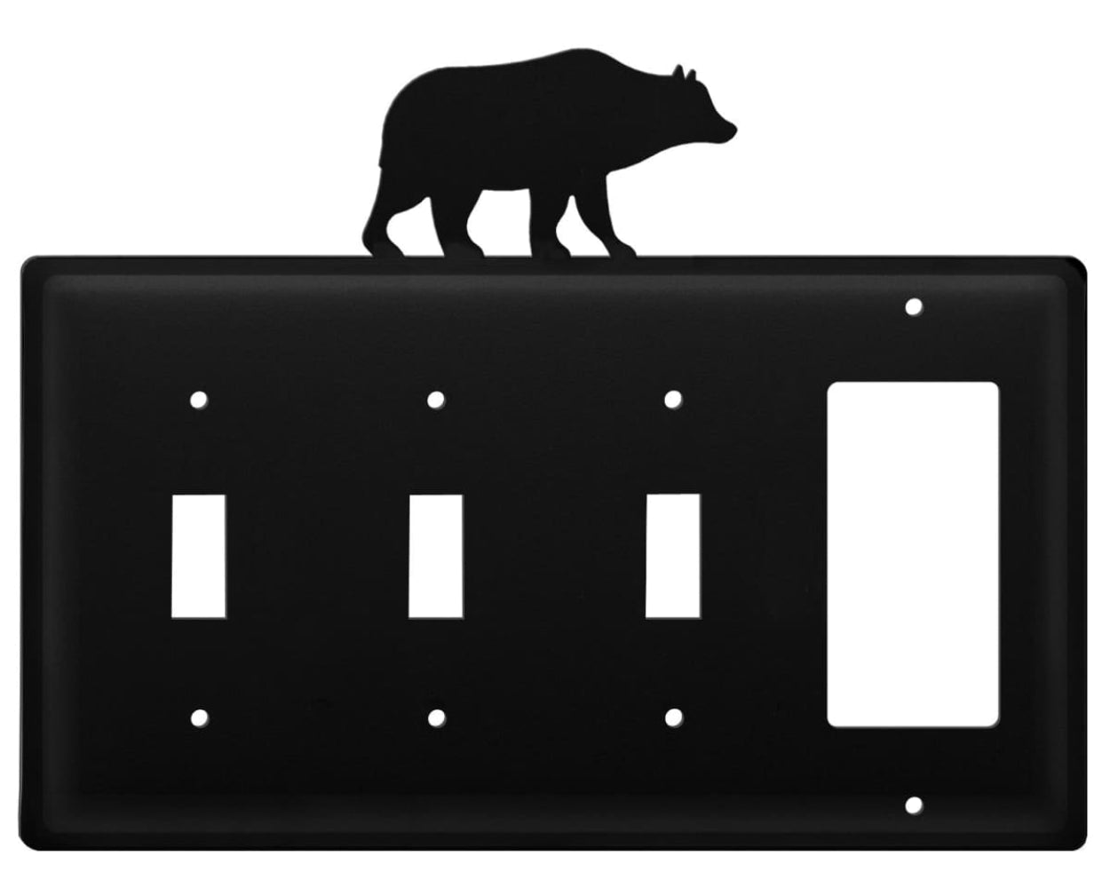 Quad Bear Triple Switch & Single GFI Cover – Black Wrought Iron, 6 1/4" H, Rustic Cabin Wall Plate by Village Wrought Iron Inc.