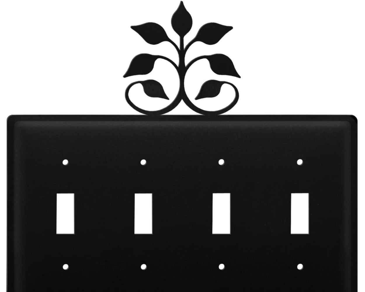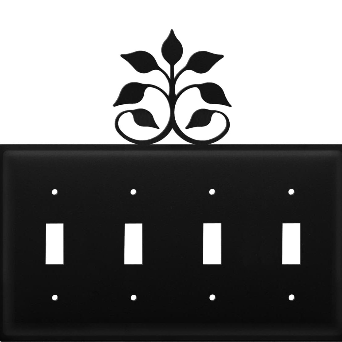 Quad Leaf Fan Quadruple Switch Cover – Black Wrought Iron, 7 1/8" H, Rustic Botanical Wall Plate by Village Wrought Iron Inc.