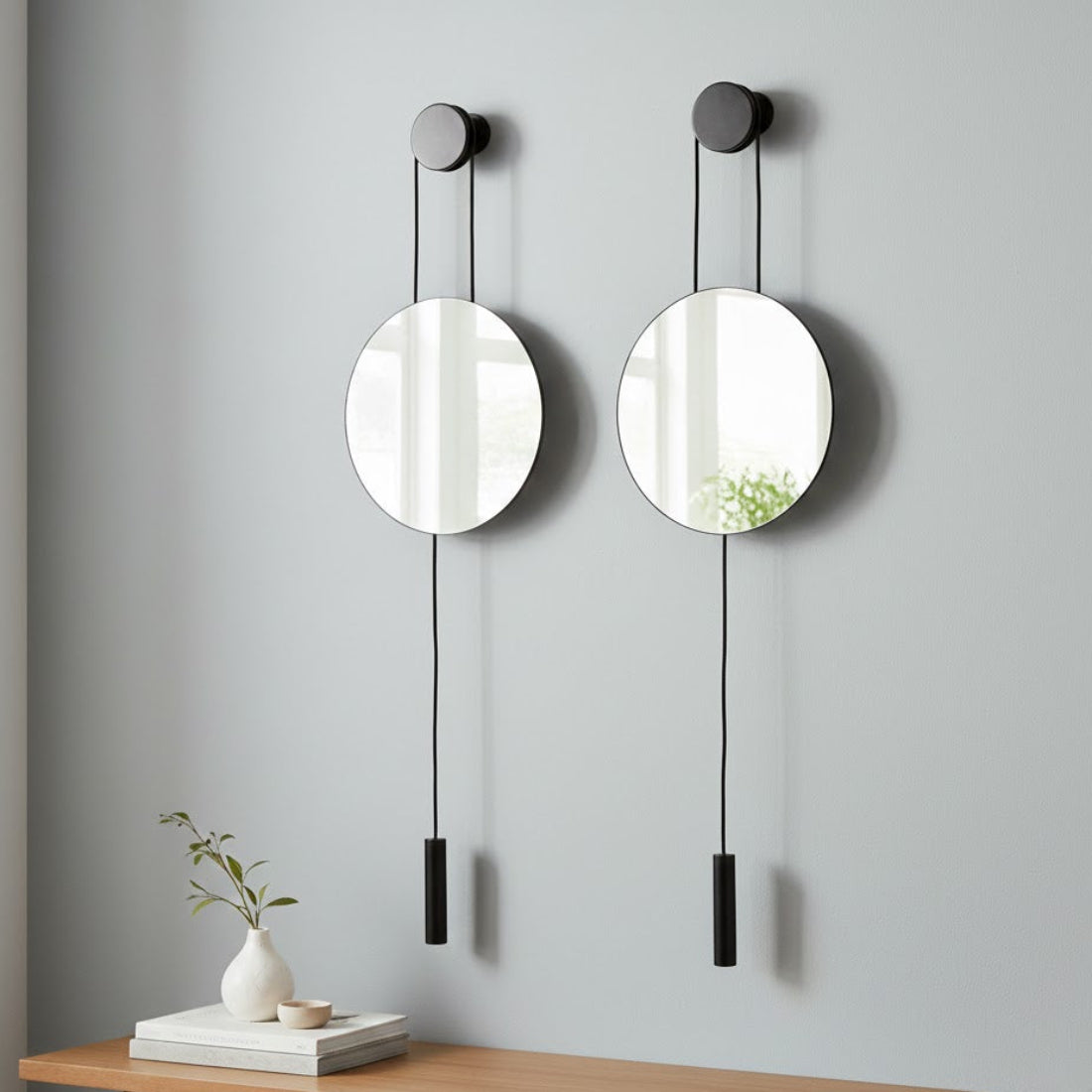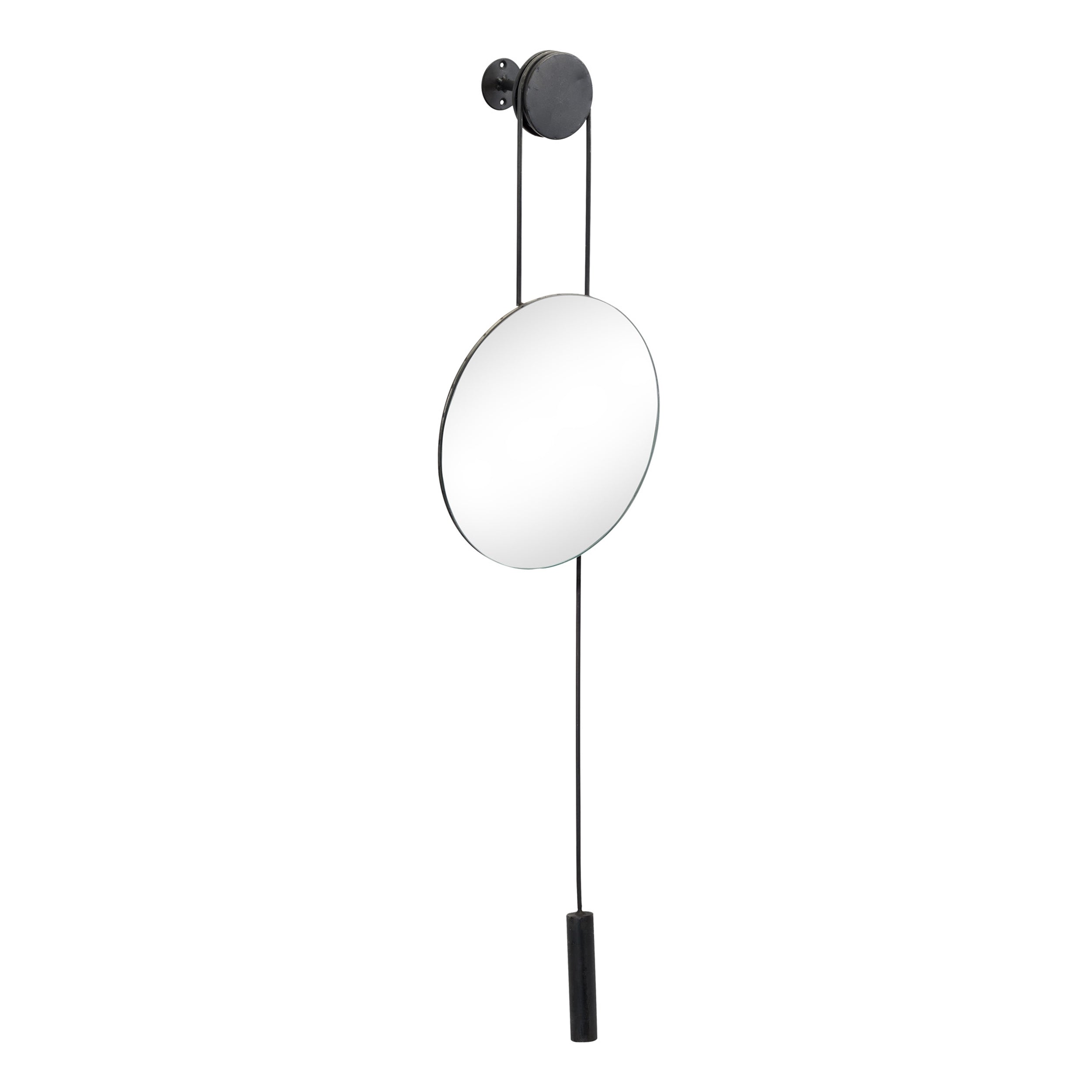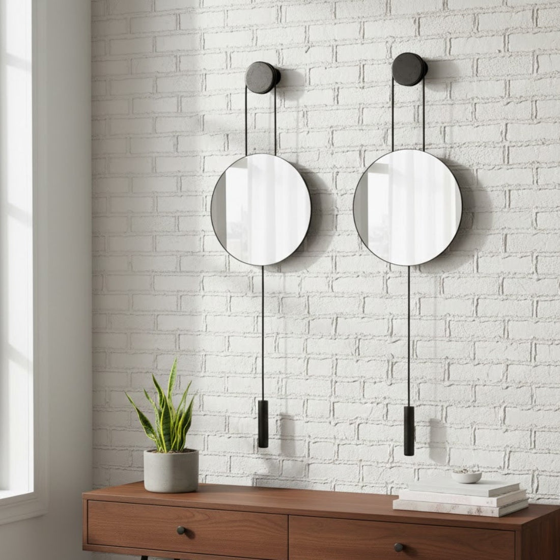 This wall mirror with iron frame delivers a modern industrial look suitable for a variety of spaces. Crafted from durable iron and clear glass, each mirror features a pulley-inspired hanging design that adds both style and functionality. Measuring 39" tall and 11" wide, the slim vertical profile works well in hallways, bedrooms, living areas, or bathrooms where extra height and reflection are needed. The adjustable hanging system allows flexible placement, making the set ideal for creating symmetry or accenting narrow wall spaces. With its clean lines and bold metal construction, this set of two mirrors blends effortlessly with contemporary, industrial, and transitional décor.