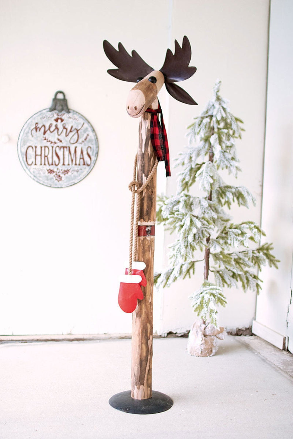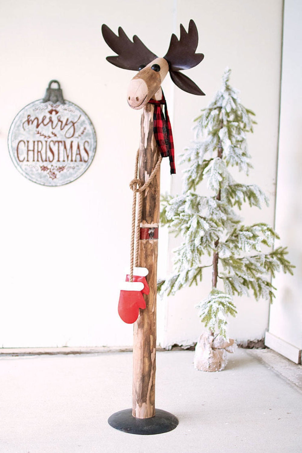 Bring personality and rustic charm to your space with the Kalalou Recycled Wood and Iron Moose – 65". Standing over five feet tall, this handcrafted moose sculpture is a true statement piece made from reclaimed wood and iron. His playful rope arms and metal mittens give him a whimsical personality, while his sturdy wooden frame adds natural warmth to your décor. Ideal for entryways, covered patios, or lodge-style interiors, this eco-conscious design combines artistry, humor, and craftsmanship in one unforgettable display.