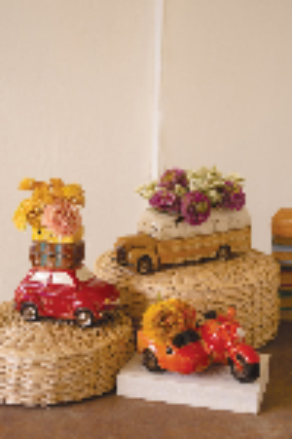 SKU - KAL-CDV2347KRed Ceramic Car Planter with Opening for Plants – 6.5" Tall Set of 2
