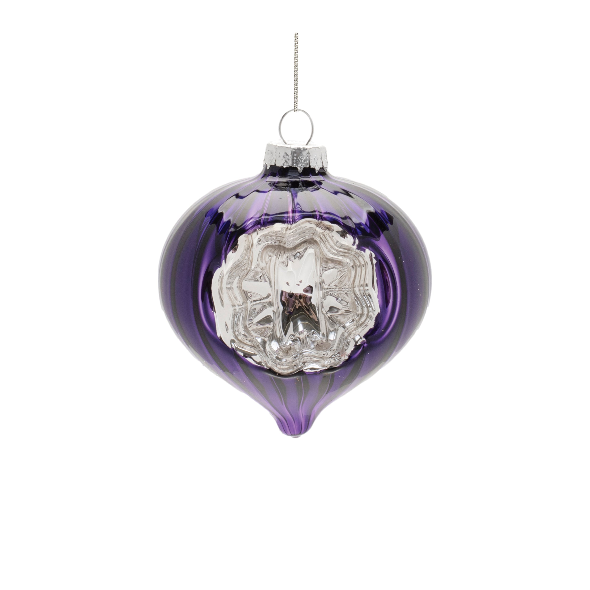 Reflector Ornament (Set of 12) – 3.25"H Glass Purple & Silver Christmas By Melrose