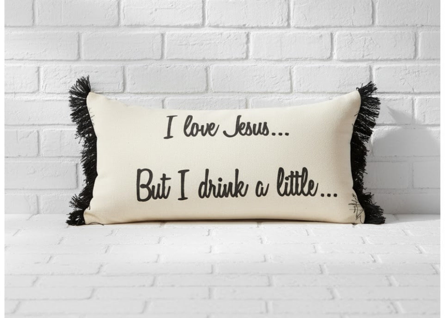 Religious Humor Pillow 17x9 Inch – I Love Jesus But I Drink a Little by Manual Woodworkers