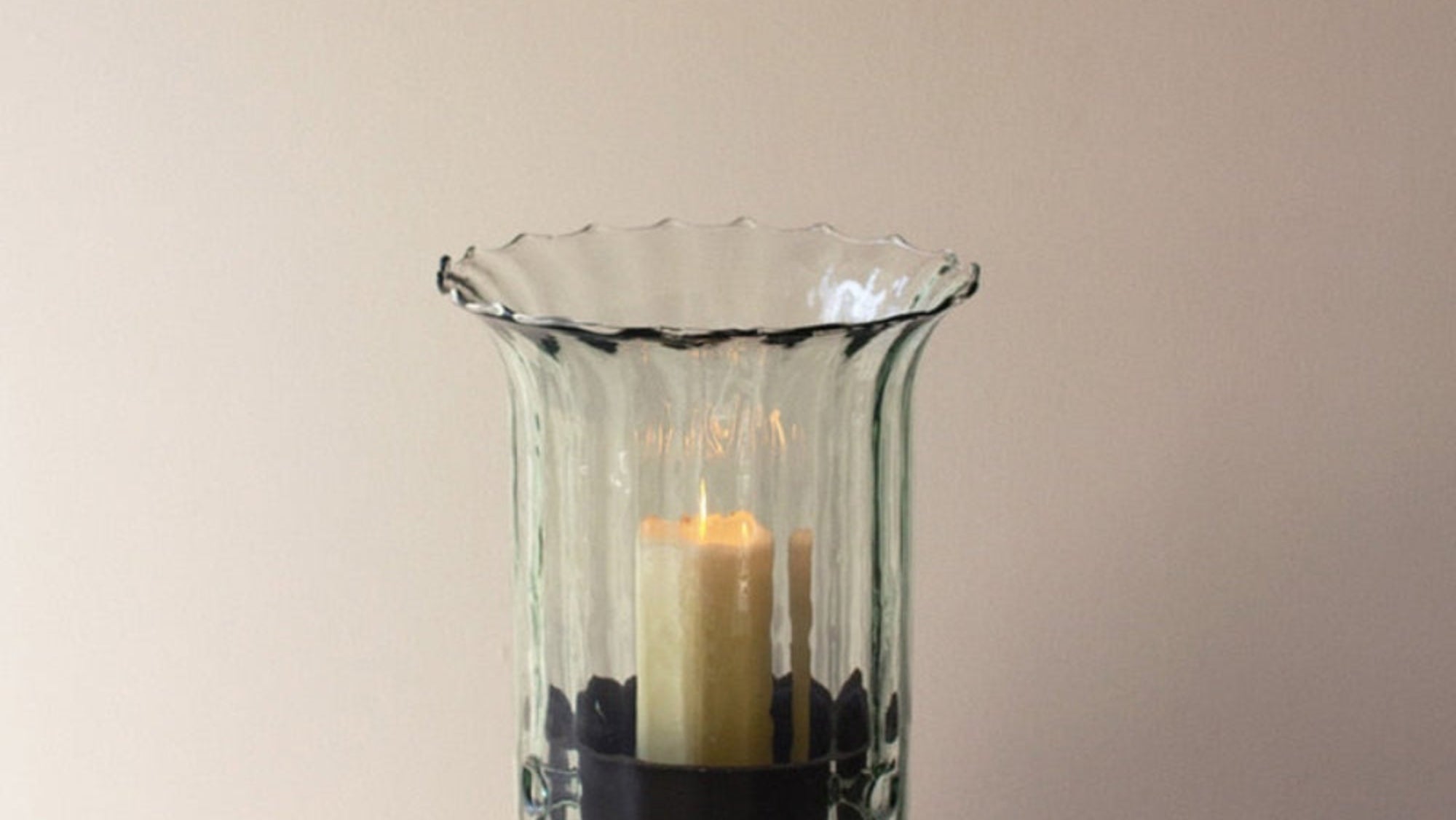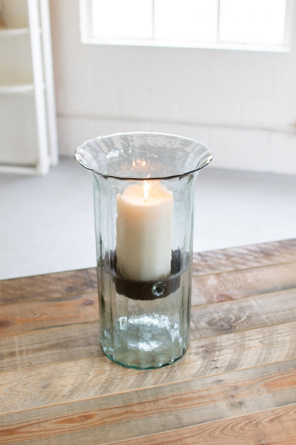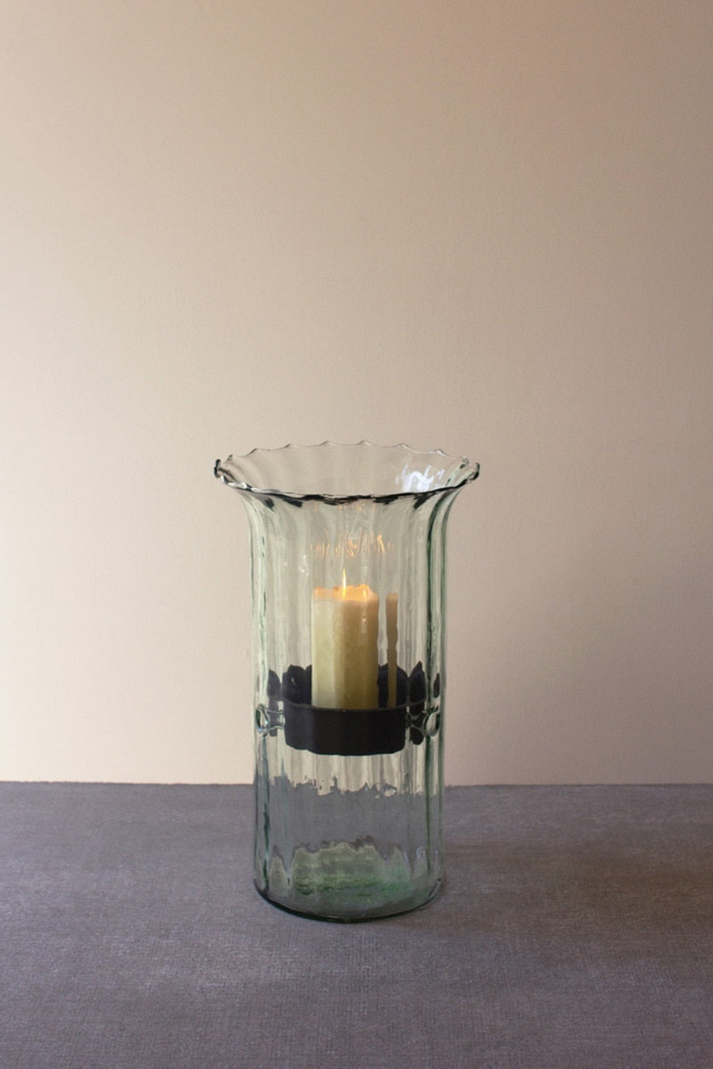 Ribbed Glass Candle Cylinder with Rustic Insert – 15" Medium Height by Kalalou