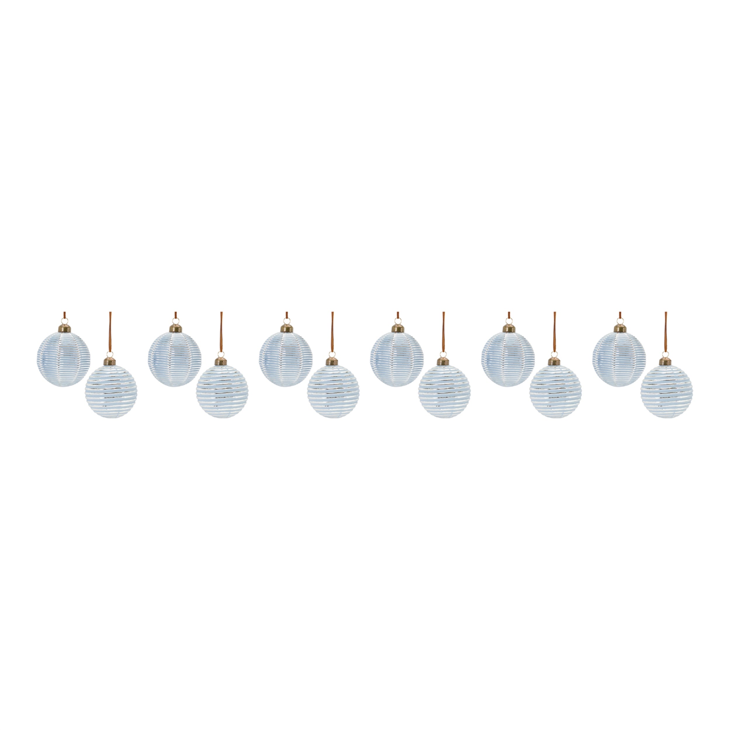 - Includes twelve high-quality glass ornaments in coordinating blue and white tones