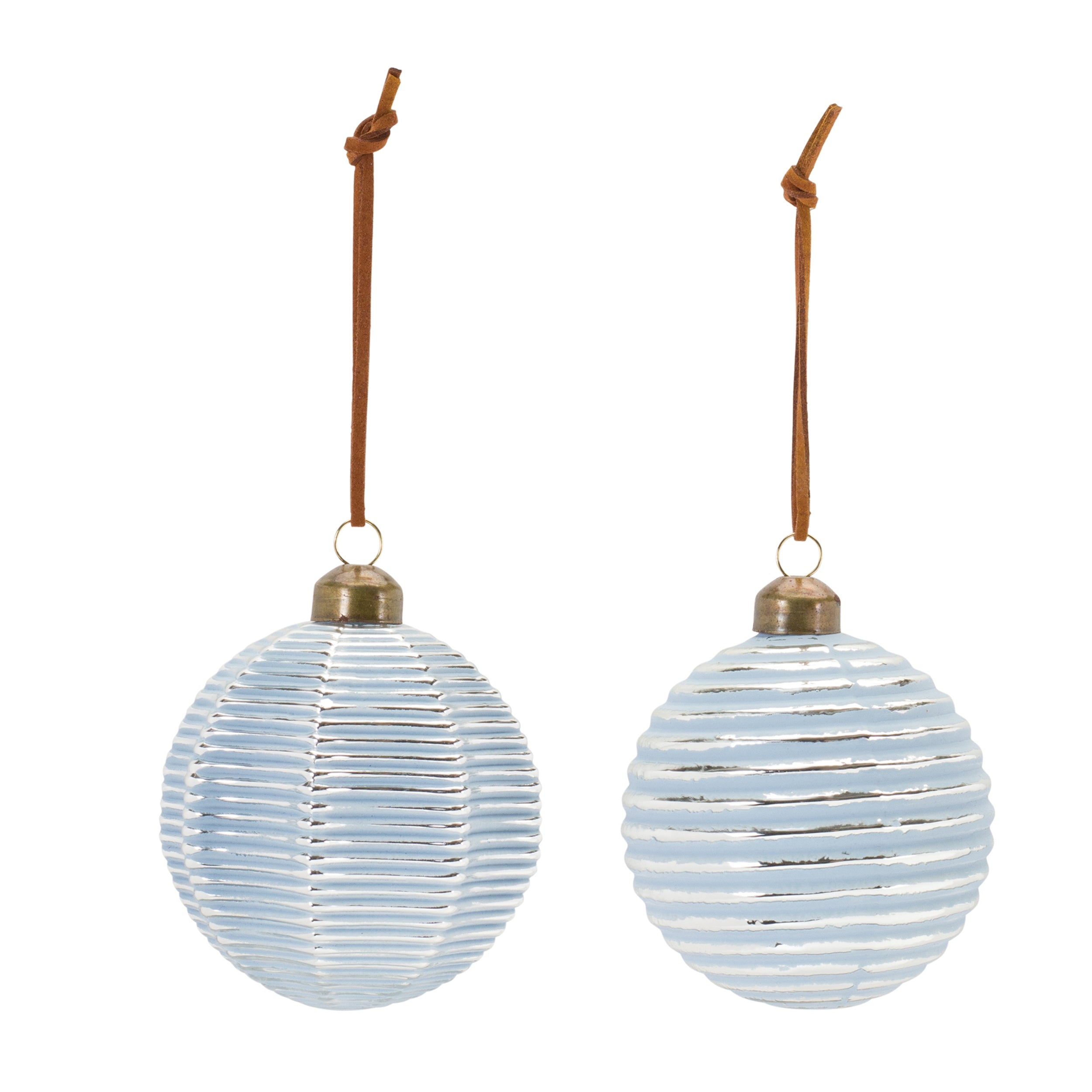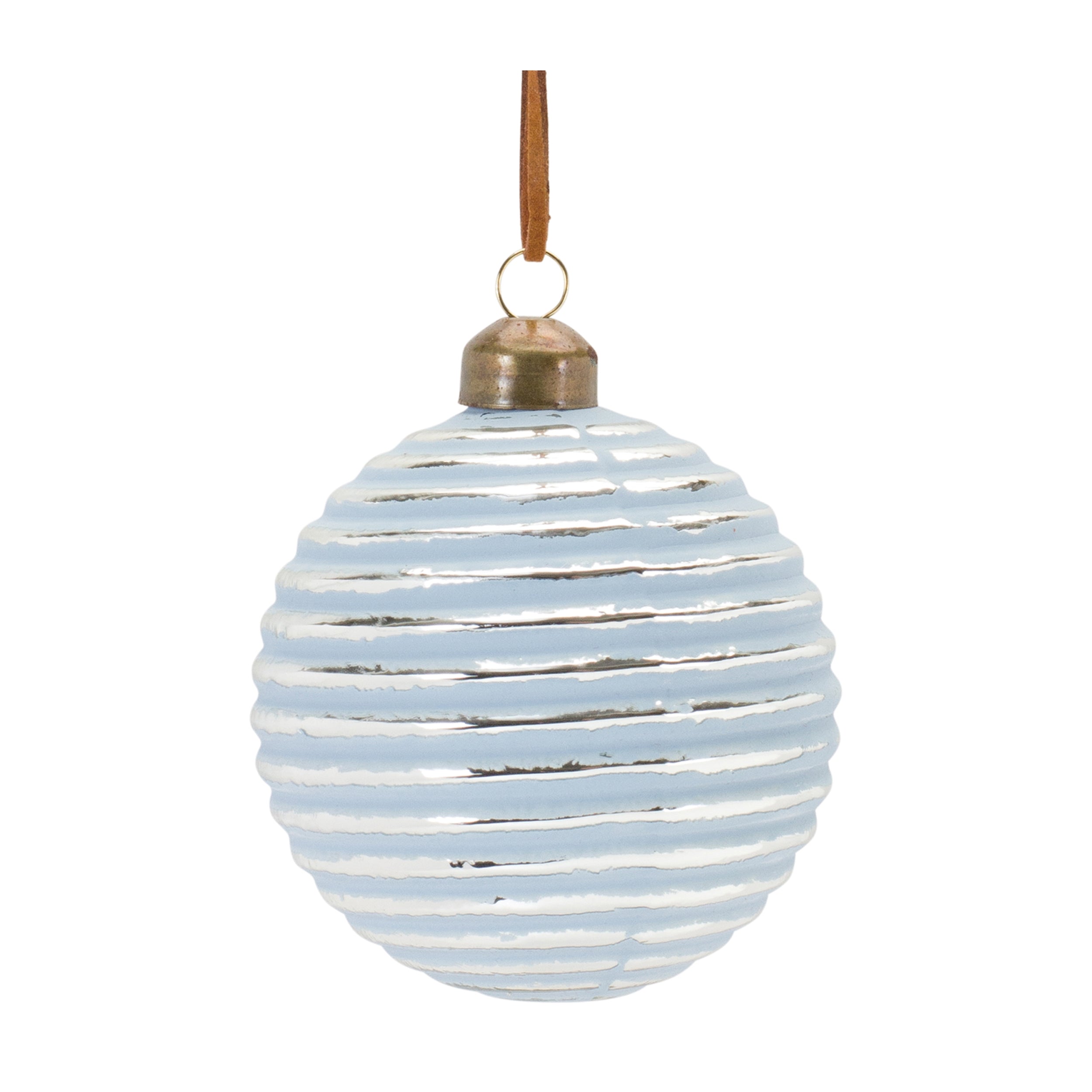 Ribbed Glass Ornament – 4"H Blue & White Christmas Decorative Hanging Set of 12 by Melrose