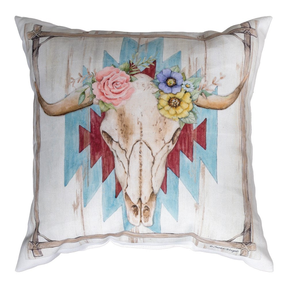 Rosewood Ranch 18" Climaweave Throw Pillow – Cow Skull Design by Manual Woodworkers