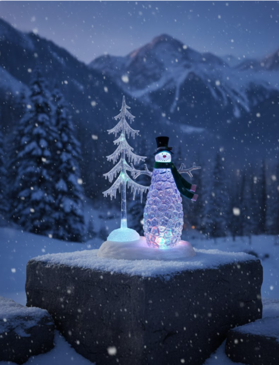 Rotating LED Snowman with Tree 15"H – Multicolor Holiday Decor by Melrose