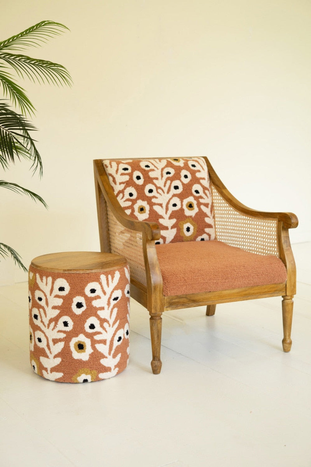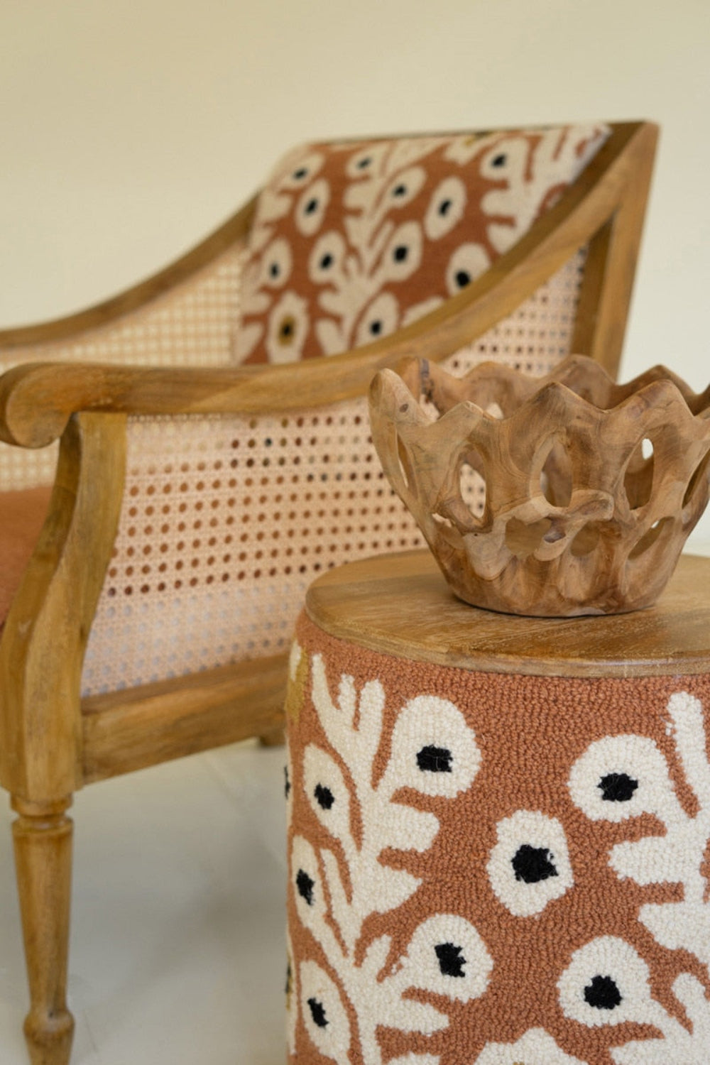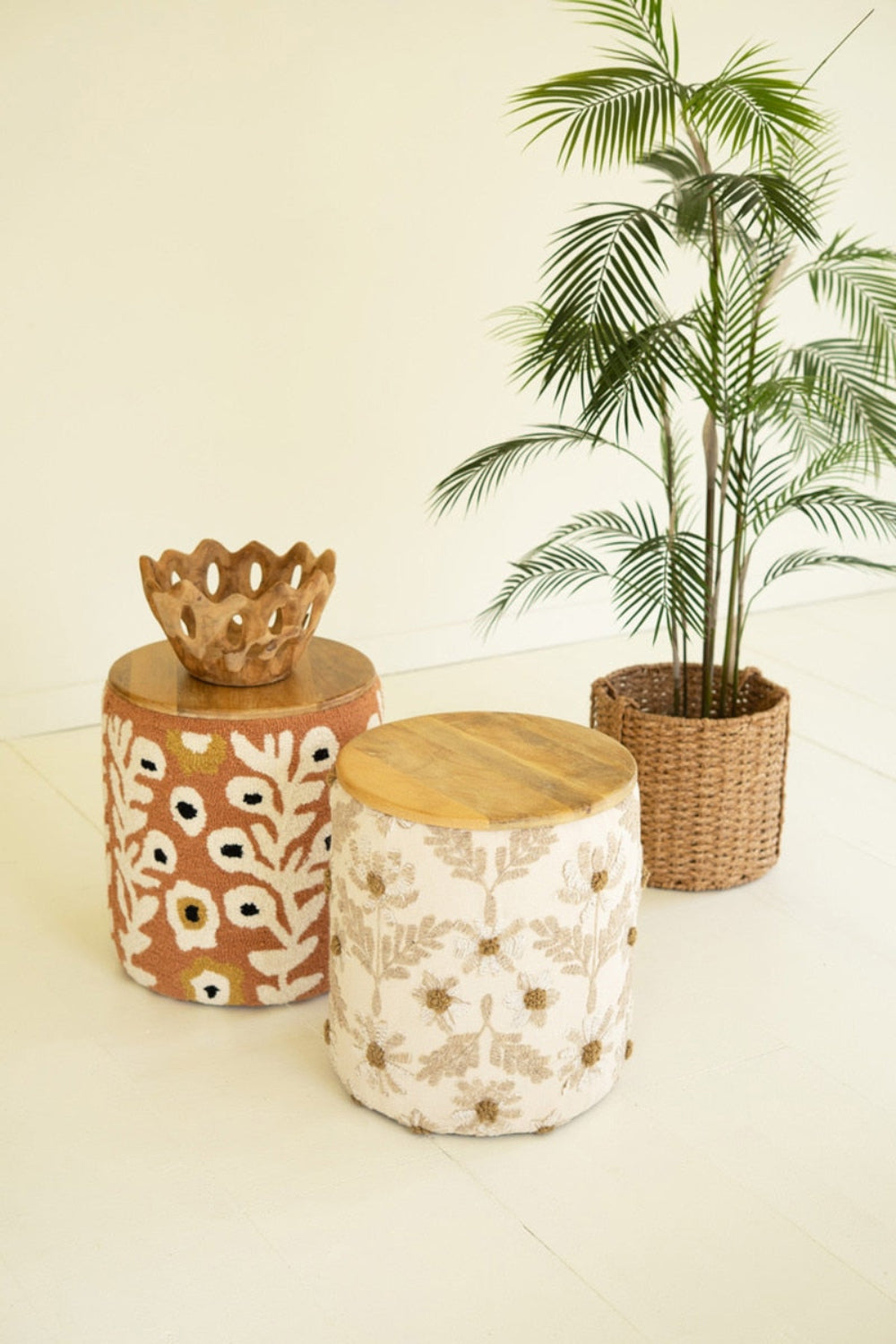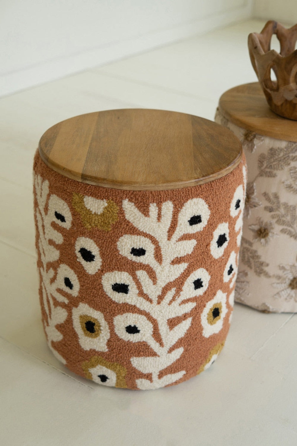 Elevate your home decor with this Round Hand-Tufted Accent Table with Mango Wood Top by Kalalou. Designed to bring handcrafted charm to any setting, this accent table features a beautifully hand-tufted top paired with solid mango wood for a warm, organic feel. Its round profile and compact size make it an ideal piece for small spaces, reading nooks, or as a decorative stand for plants, lamps, or curated decor pieces.Whether your style leans boho, eclectic, or artisan-inspired, this table serves as both a functional surface and a unique visual statement. Built with quality materials, it promises durability and lasting style.Product Dimensions: 16.5" Diameter x 18.5" Height