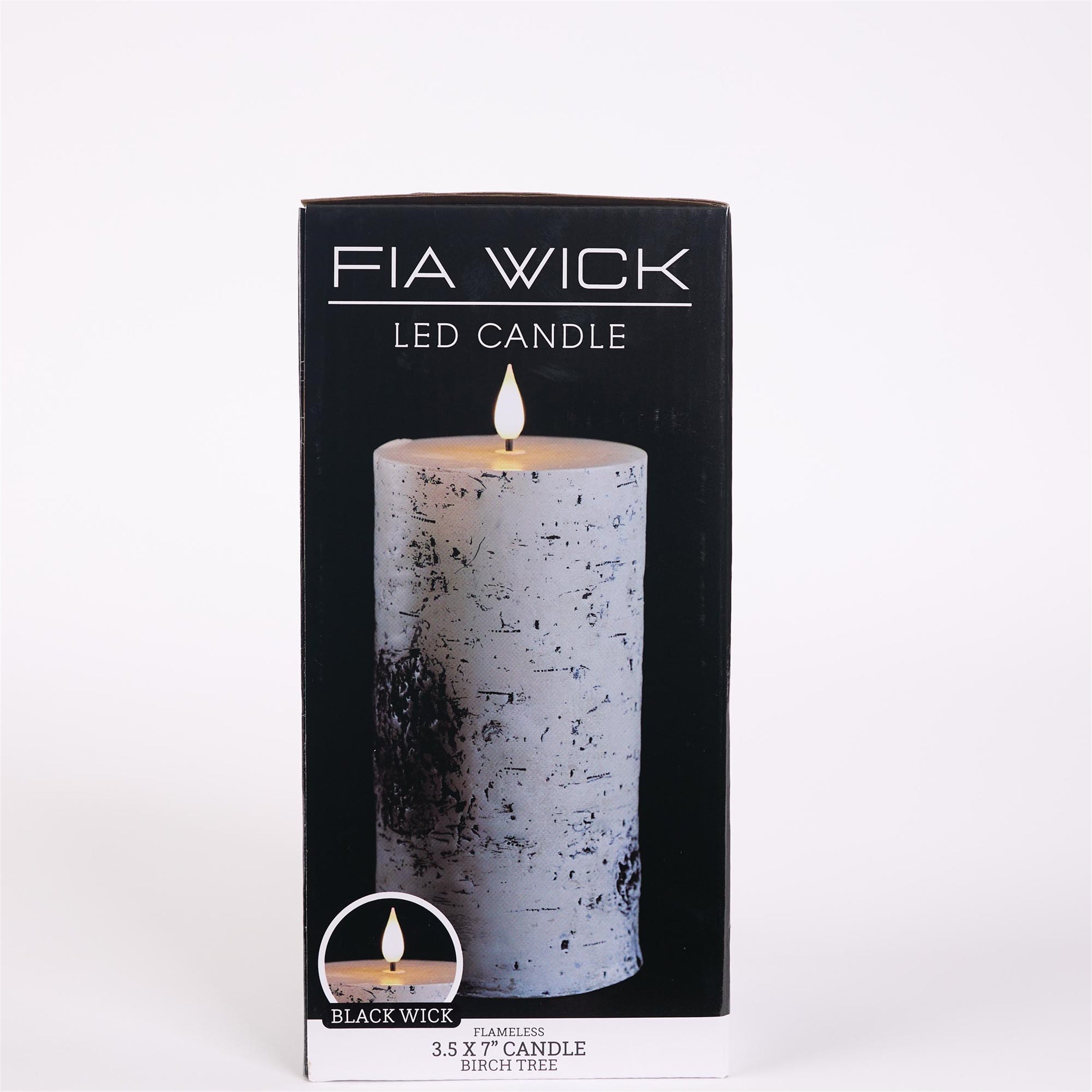 Add natural charm and safe illumination to your home with the FIA Wick Birch Design Pillar Candle Set of 2 by Melrose. Each candle measures 3.5" D x 7" H and features a realistic faux birch design in earthy brown and beige tones. Crafted from wax and durable plastic, these LED candles use innovative FIA Wick technology to mimic the flicker of a real flame without the hazards of an open fire. Designed for indoor use, each candle requires two C batteries (not included) and includes a universal remote compatible with all FIA Wick candles, making it easy to control your lighting from a distance.