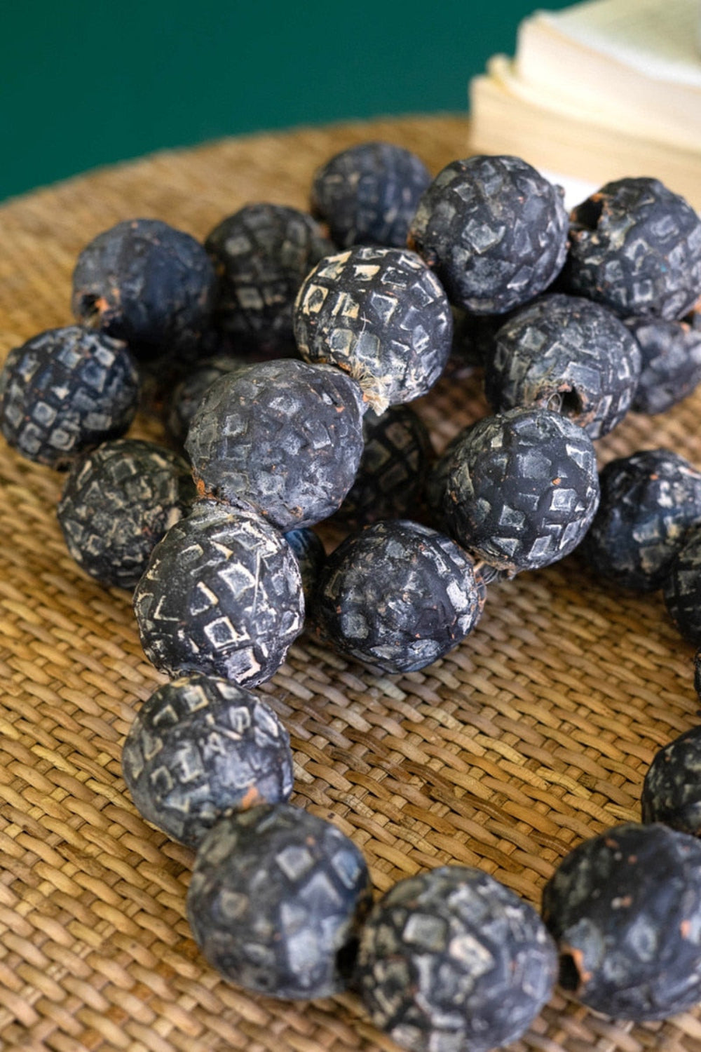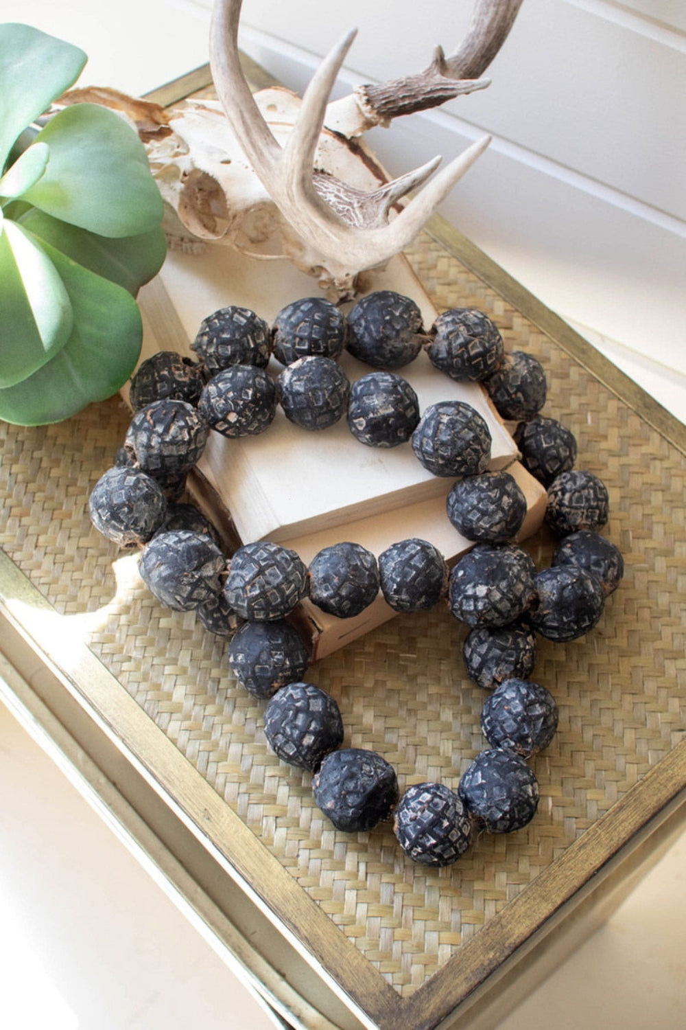 Rustic Black Clay Bead Garland – 25" Long Table Display Set of 2 by Kalalou