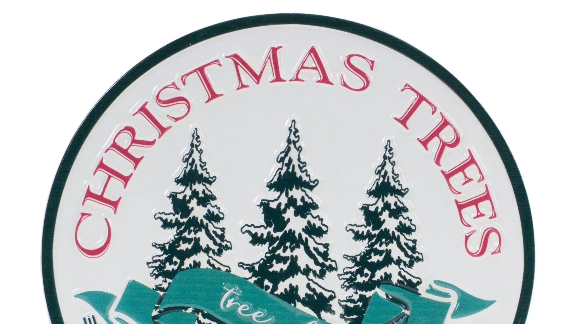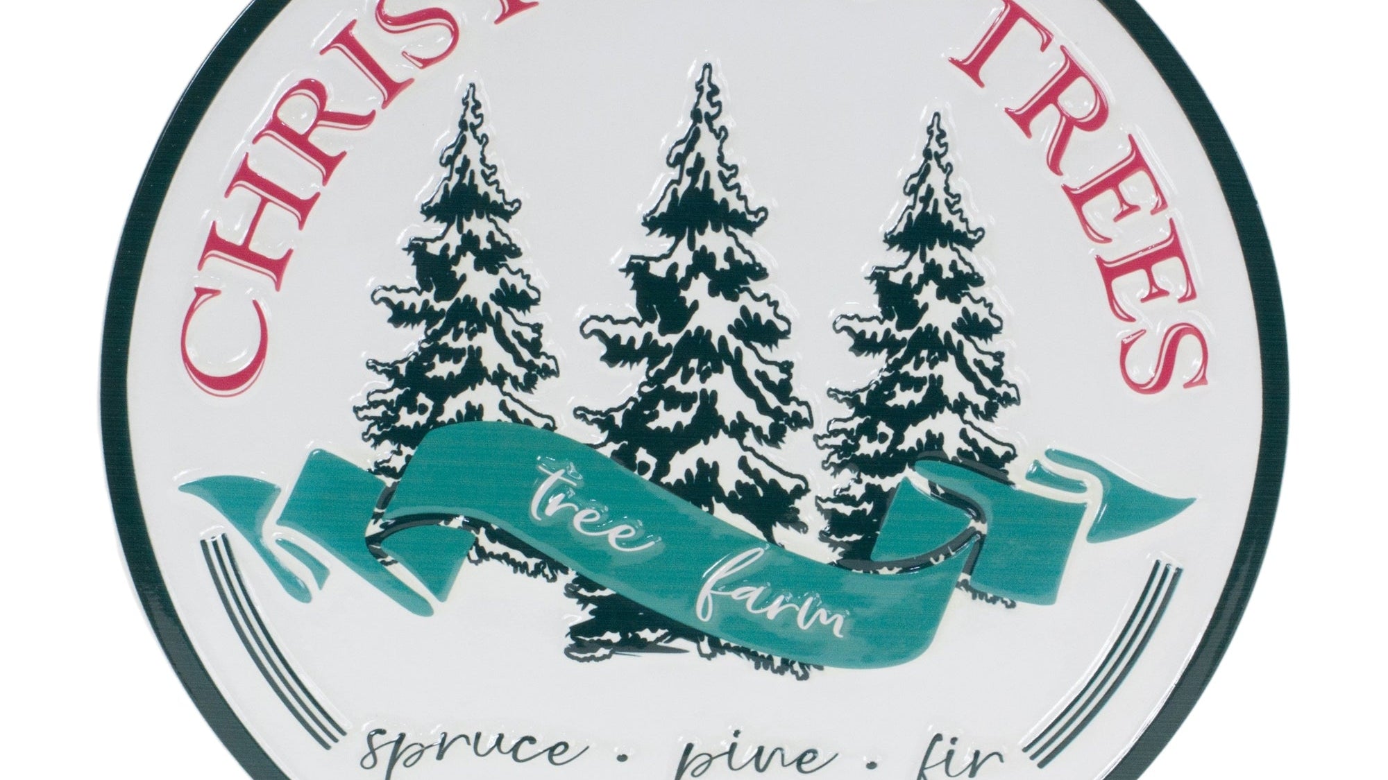 Add a timeless, festive touch to your home with this Christmas Tree Farm Sign. Crafted from durable metal, this 14" diameter sign features a charming vintage design in classic red, green, and white hues. Perfect for hanging on entryway walls, mantels, or any indoor space in need of holiday cheer, this farmhouse-inspired decor piece brings a warm, nostalgic feel to your seasonal decorations. Built to last, it is designed to enhance your holiday celebrations year after year.