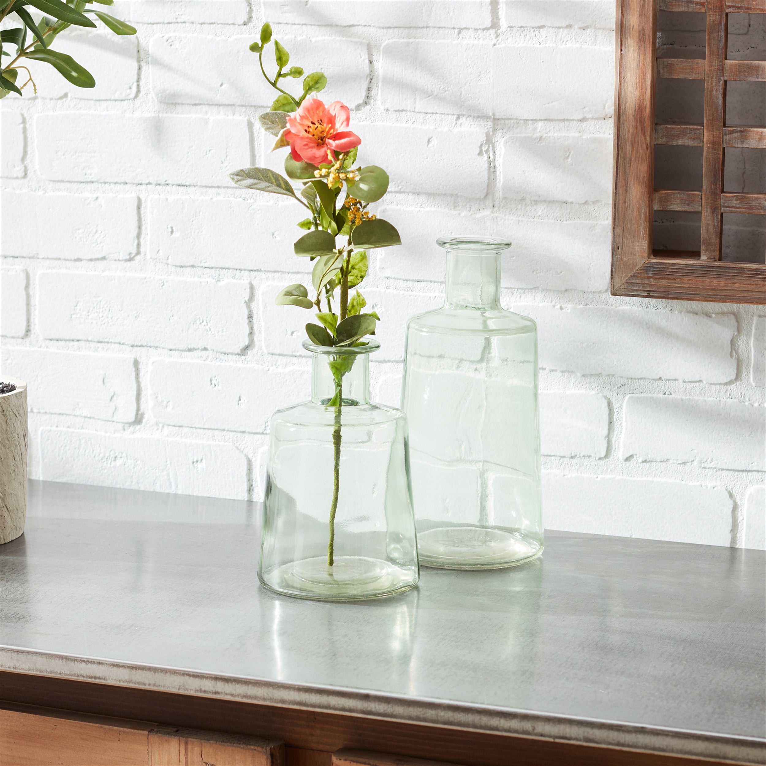 Sage Green Glass Bottle Vase (Set of 2) – 7"H & 9.5"H Decorative Accent – By Melrose