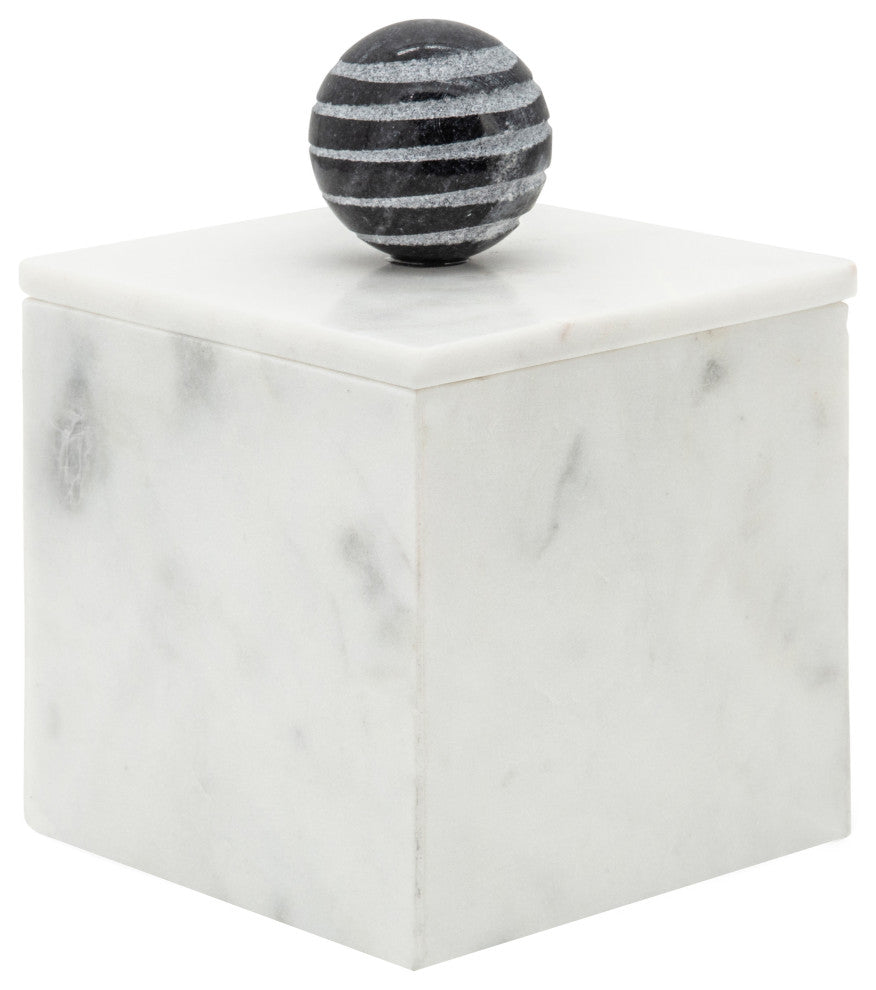 Sagebrook Home 15483-01 Marble, 5x7" Box With Orb, White