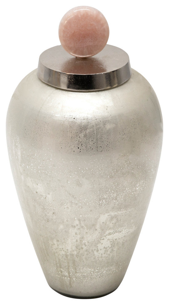 A distinguished way to decorate your home will always include lustrous decor. This 17" silver glass vase showcases a blush knob to help add cool tones to your home. A perfect way to perk up your staircase, fireplace or pair it with a painting to spice up your living room. A decorous way to display your diy twig project.