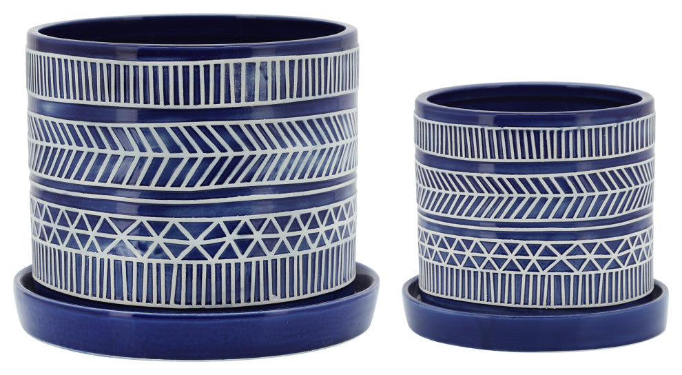 Sagebrook Home 15912-08 Set of 2 Tribal Planters with Saucer 6"/8", Blue