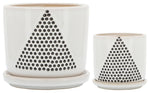Sagebrook Home 16271-01 Set of 2, 5"/6" Triangle Dots Planter with Saucer, White