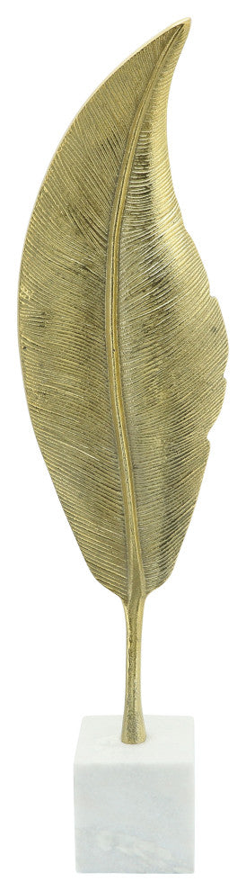 Display this stunning piece of decor in any room of your home. Bringing effortless style and elegance to any modern interior decor. This item features a beautiful gold finish on an impeccable leaf design. All brought to a stunning balance by a pristine white marble base. A design that screams modern style and fashionable taste!
