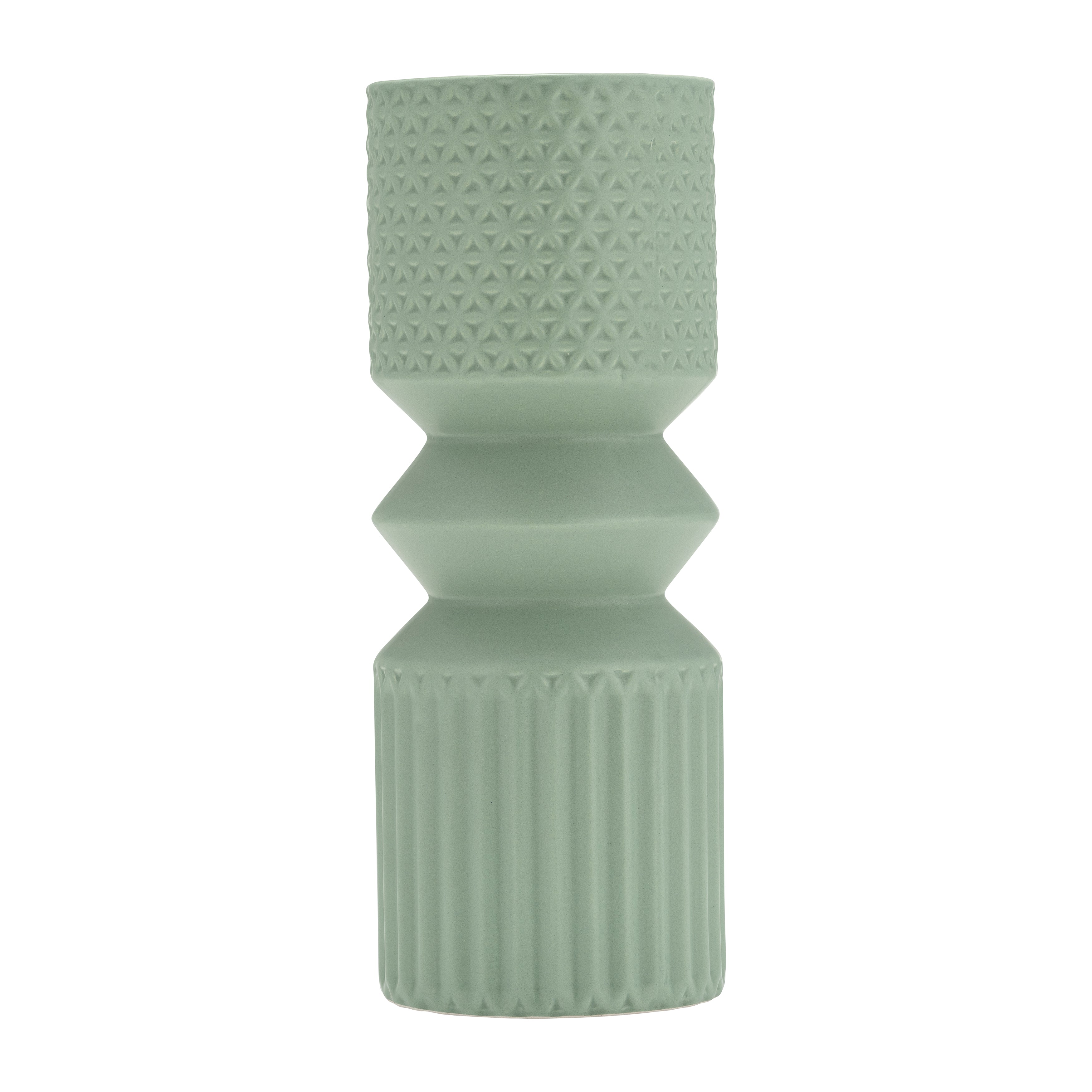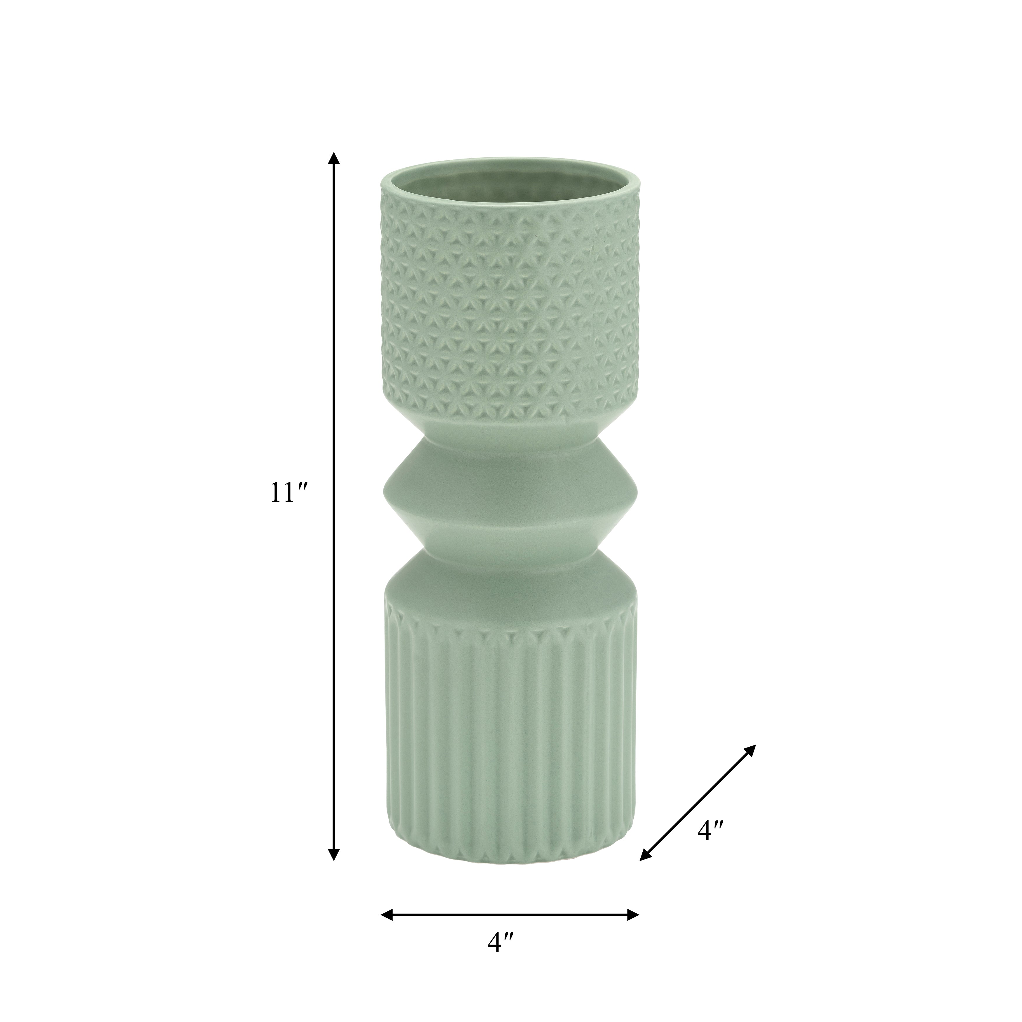 Show off your greenery or flowers in this beautiful ceramic vase. This abstract accent measures 6" x 6" x 10". The beautiful vase weighs 1.3lbs.