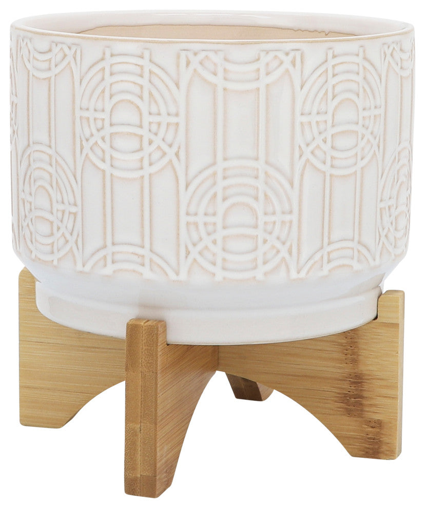 Ceramic planter with circles design on the exterior. It has a non-glossy finish and the wood stand is glued to the planter. This beautiful piece will be a great addition to your living room or entry way.Sagebrook home has been formed from a love of design, a commitment to service and a dedication to quality. They create and import fashion forward items in the most popular design styles. Backed with years of experience in the textile field, they are now providing a complete home decor story. The combination of wall decor, furniture, lighting and home accessories are all coordinated with textiles to provide a complete home look. Sagebrook home is committed to providing the best home decor and accent pieces at value prices.