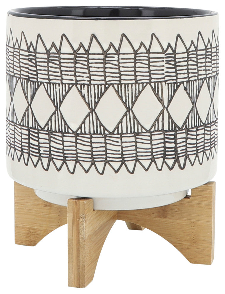 Ceramic planter with aztec design on the exterior. It has a non-glossy finish and the wood stand is glued to the planter. This beautiful piece will be a great addition to your living room or entry way. Sagebrook home has been formed from a love of design, a commitment to service and a dedication to quality. They create and import fashion forward items in the most popular design styles. Backed with years of experience in the textile field, they are now providing a complete home decor story. The combination of wall decor, furniture, lighting and home accessories are all coordinated with textiles to provide a complete home look. Sagebrook home is committed to providing the best home decor and accent pieces at value prices.