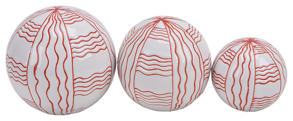 Sagebrook Home 16551-06 Set of 3 Curvy Line Painted Orbs, 4"/5"/6", White/Red