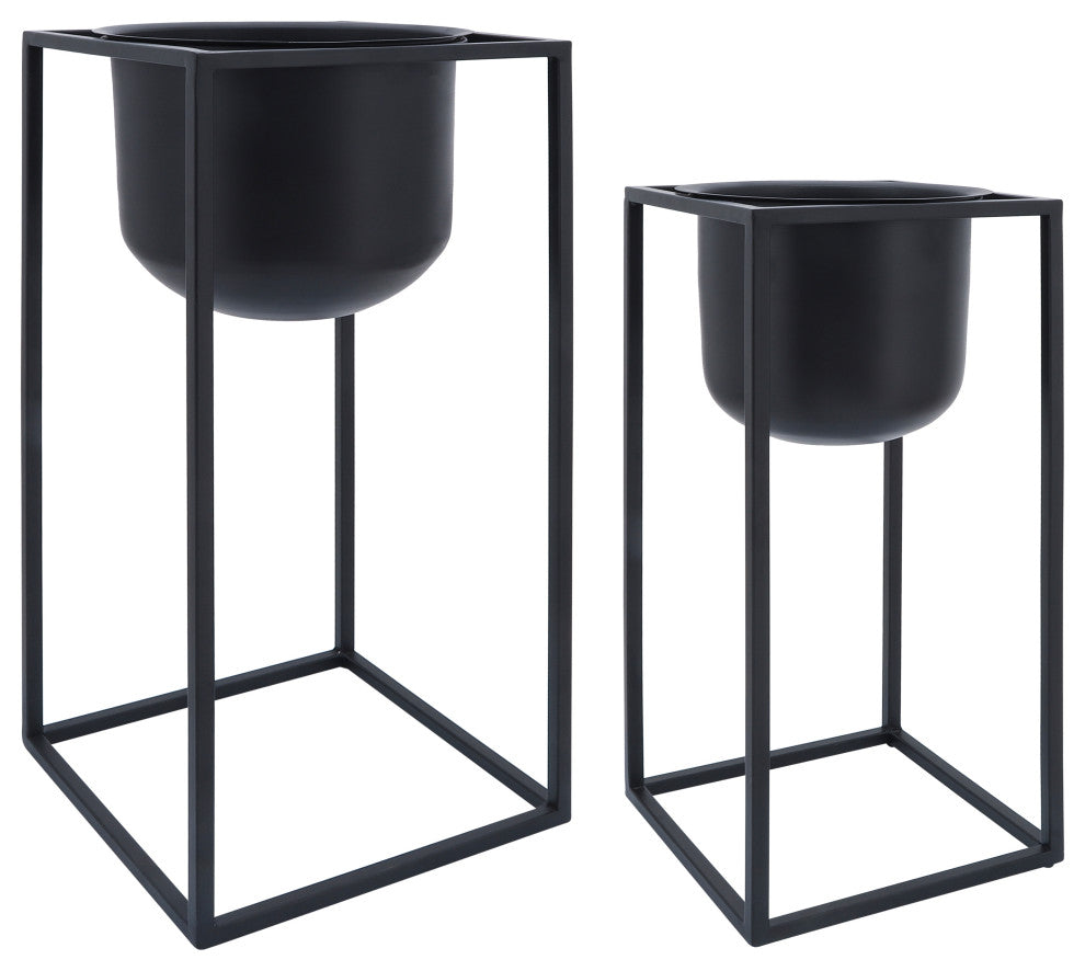 SKU - SBH-16564Sagebrook Home Metal, Set of 2 10/12" Planters, Black Available at Uber Bazaar